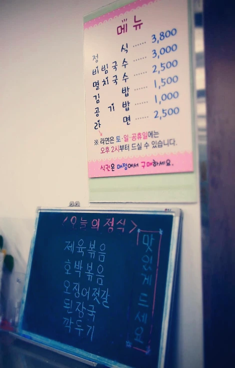 메뉴는 김밥, 국수, 라면, 정식인데 가장 비싼 것이 4천 원을 넘지 않았다. 혼자라면 제육볶음과 된장찌개가 있는 정식을 택했겠지만, 아직 매운 것을 못 먹는 아이가 있어 멸치국수를 주문했다.
