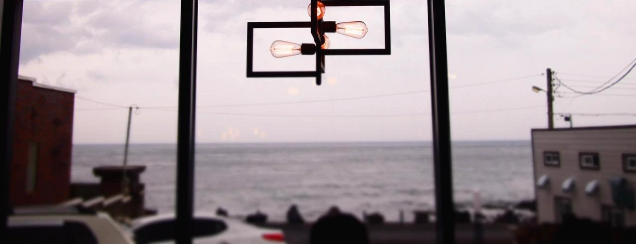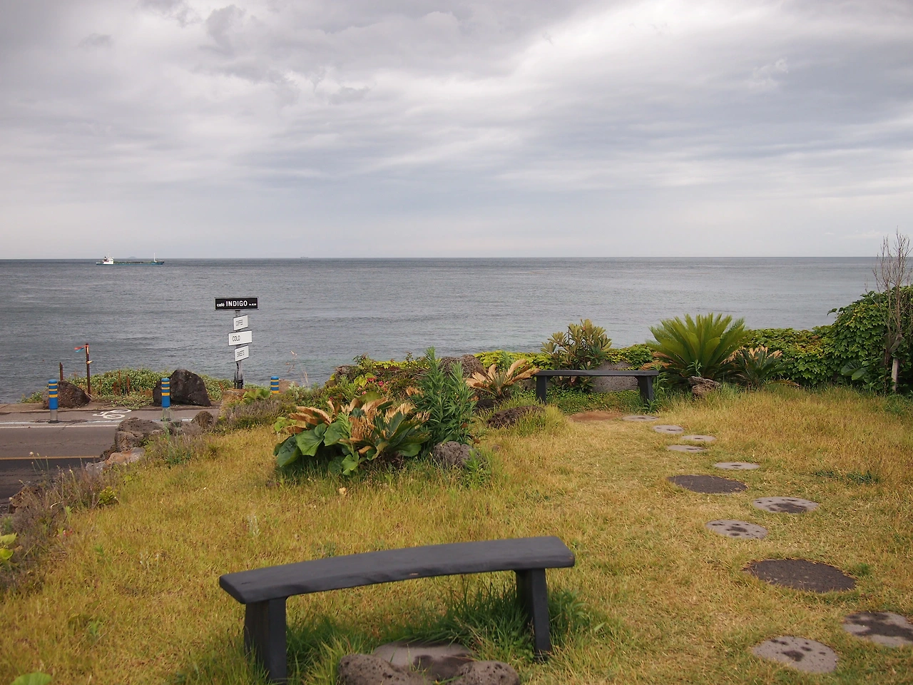 하지만, 이제는 상황이 다르다. 주차장을 꽉 메운 차량들만 봐도 내부에 자리가 없을 것 같다는 예상을 했다. 내부에 들어가 보니 역시나 자리가 없었다. 하지만, 여긴 실내만큼 멋진 실외 벤치석이 있다. 주차장보다 입지가 높아서 바다를 내려다볼 수 있는 데다 시야가 펑 뚫려있어 전망이 참 좋다. 걱정은 실외에 있다가 비를 맞게 되는 일. 다행히 주문과 동시에 실내에 자리가 났다.