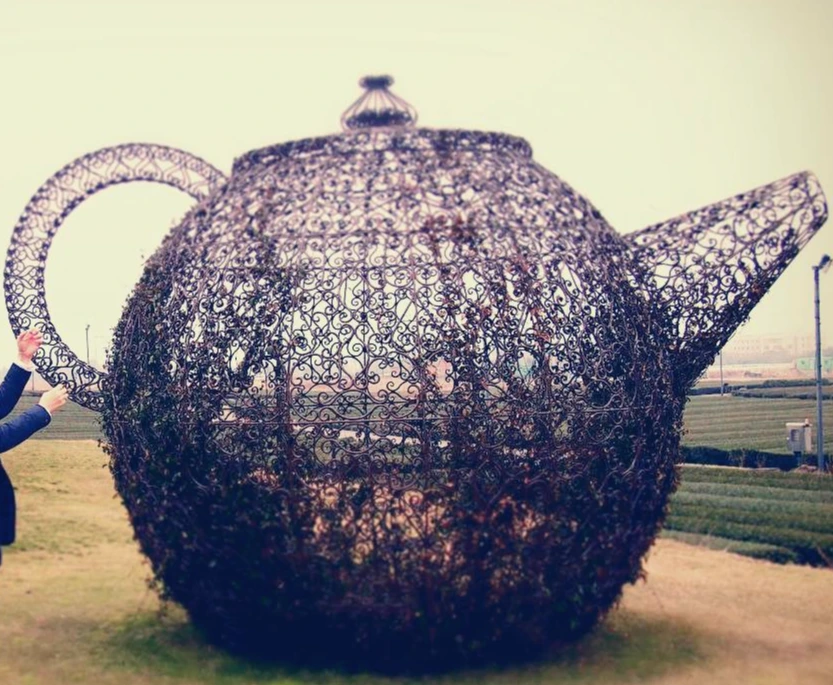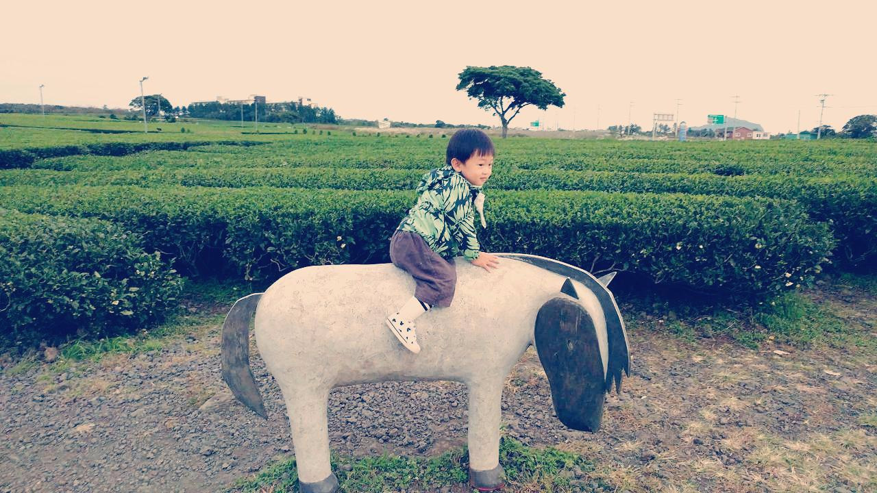 다기(茶器)와 제주말 조형물이 초록만으로 심심할 수 있는 정경에 재미를 더해준다.