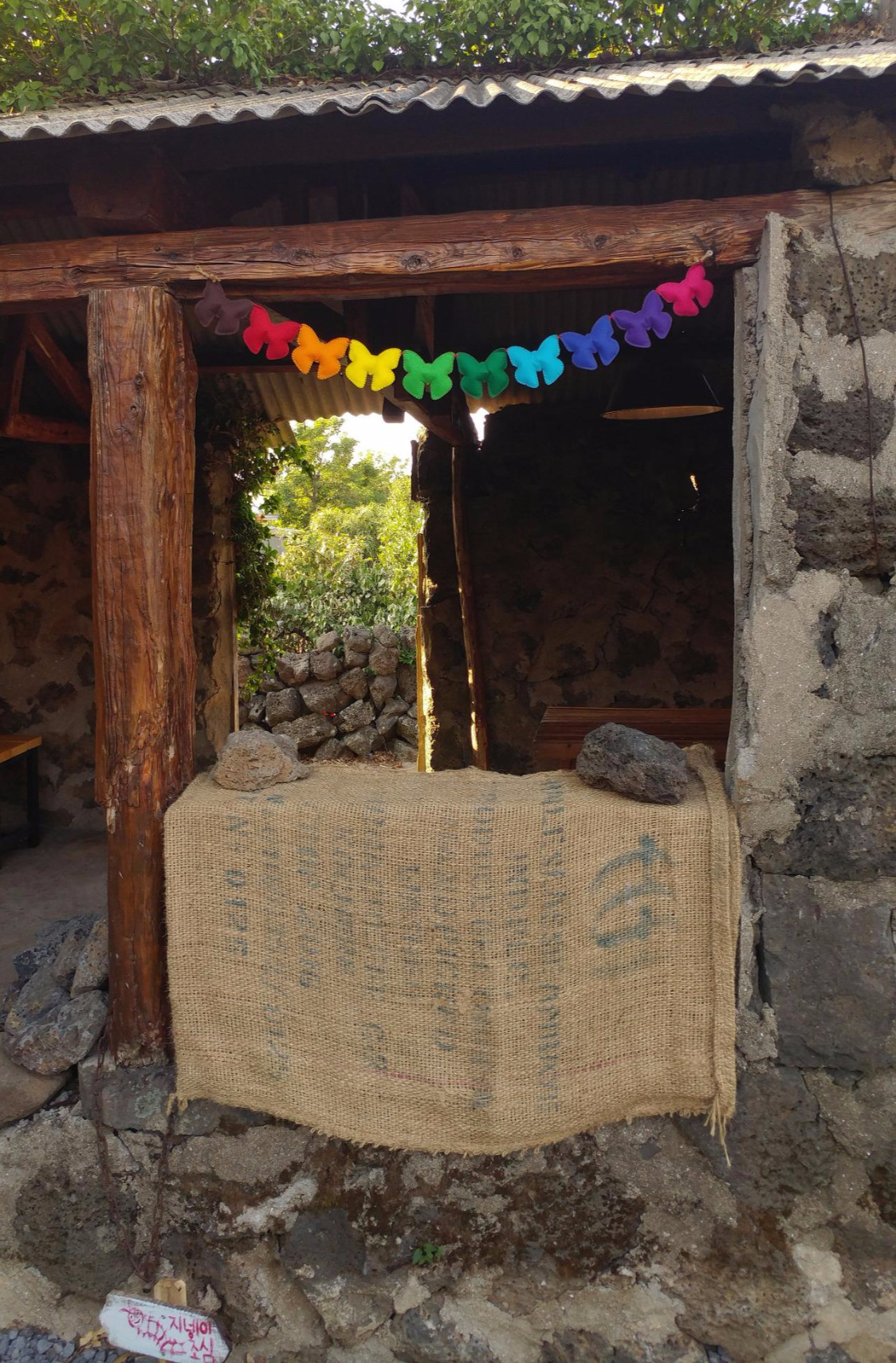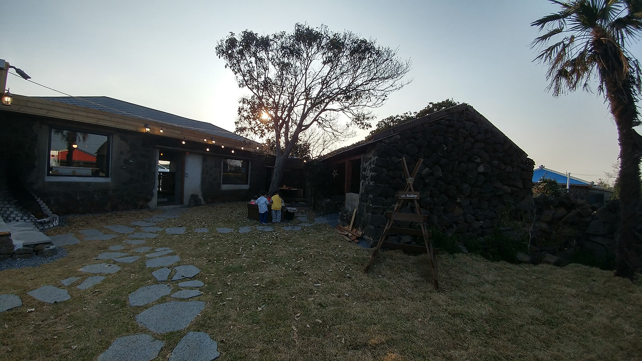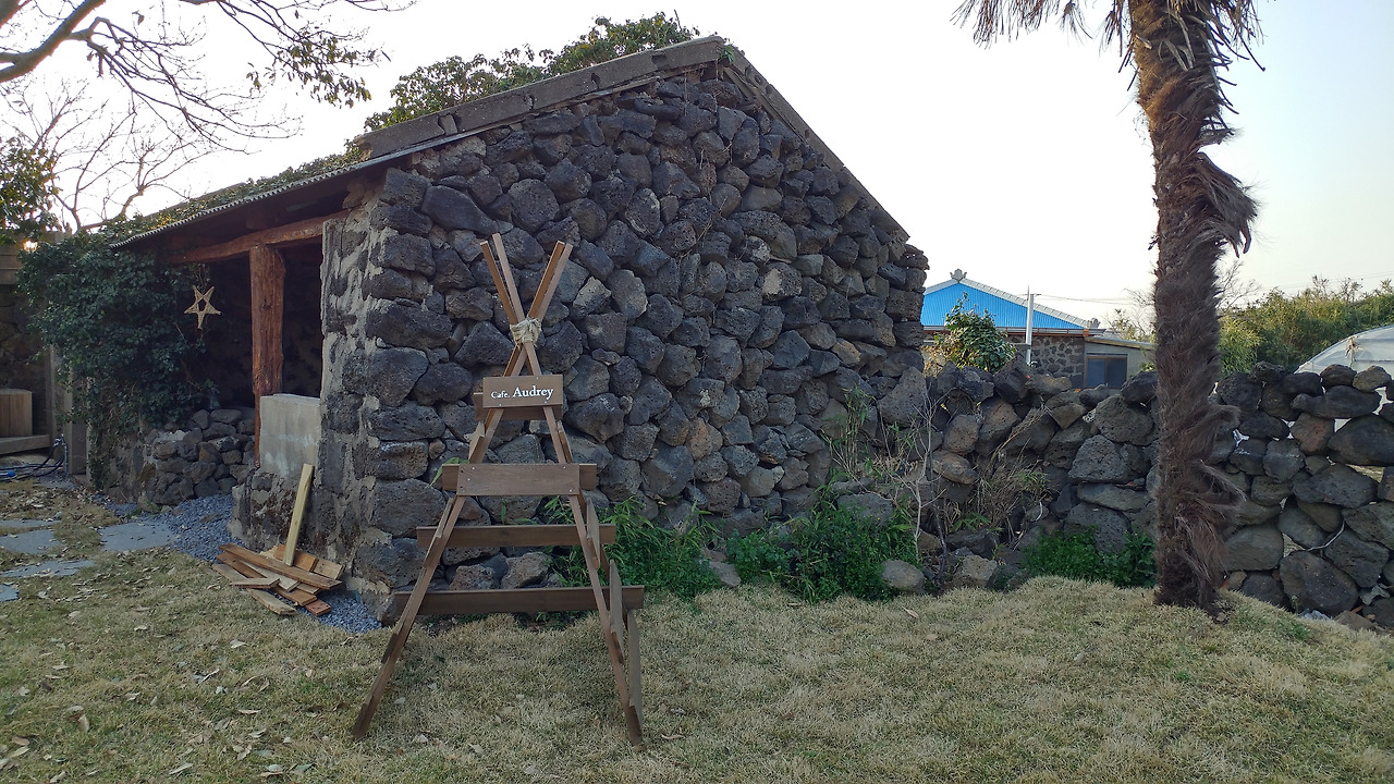 외양간 공간은 기존에 푸줏간과 외양간으로 사용되었던 곳을 그대로 살려서 테이블을 배치하였다. 소여물을 끓이던 아궁이와 솥이 있는 풍경은 요즘 시골에서도 흔히 찾아보기 힘든 진귀한 것들이라 아이들에게 보여주기에 좋다. 이색적인 분위기인 이 공간은 물론 마당과 가장 가깝기도 해서 아이들을 케어하기에 더욱 좋다. 최근엔 아이와 함께하는 손님들을 위해 마당에도 캠핑용 테이블과 의자가 깔린 듯하다. 단점은 근처 축사에서 날아오는 똥파리가 종종 있다는 것. 하지만, 제주에서 지네, 파리, 모기, 벌레 등은 익숙해져야 할 동반자라는 것을 생각하면 그렇게 큰 문제는 아닐지도 모르겠다.