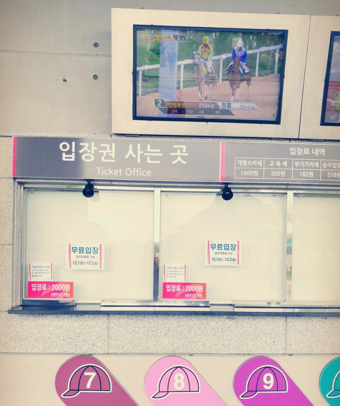친정어머니와 세돌이 되어가는 쏠이와 함께 제주여행 중이시다. 아이가 있는터라 식음료부스에서 해결하기는 어렵고, 경마장 건물 내 식당을 이용했다. 건물을 들어서는 순간 마권을 사기 위해 줄 서 있는 수많은 사람들을 보고 내심 깜짝 놀랐다. 모두들 지하철역 무가지(無價紙)만 한 정보지를 구겨들고 진지하고 심각한 얼굴들로 한 곳을 보고 있었다.
