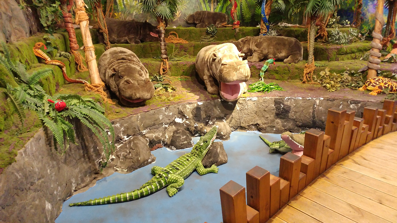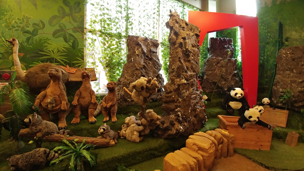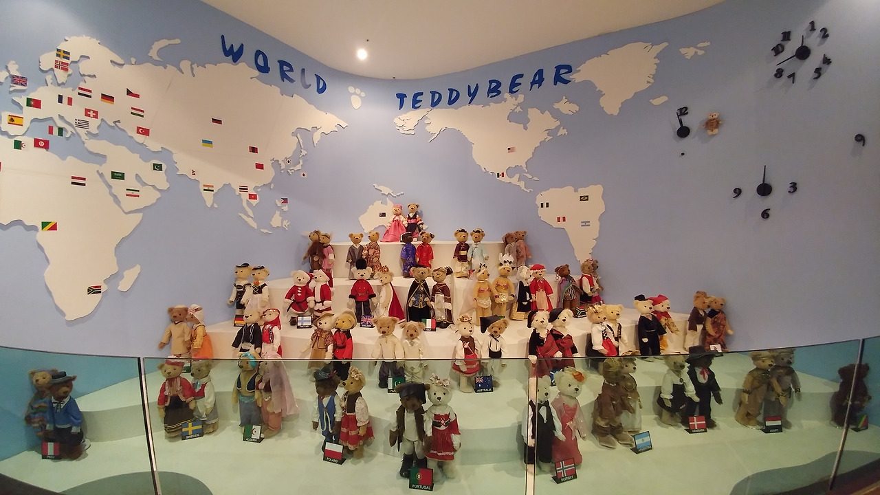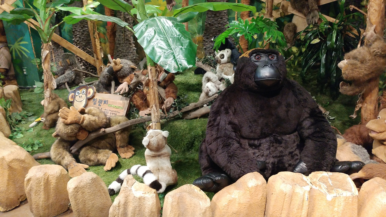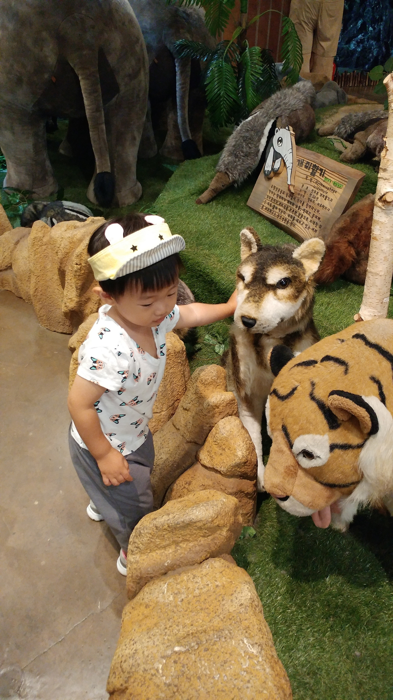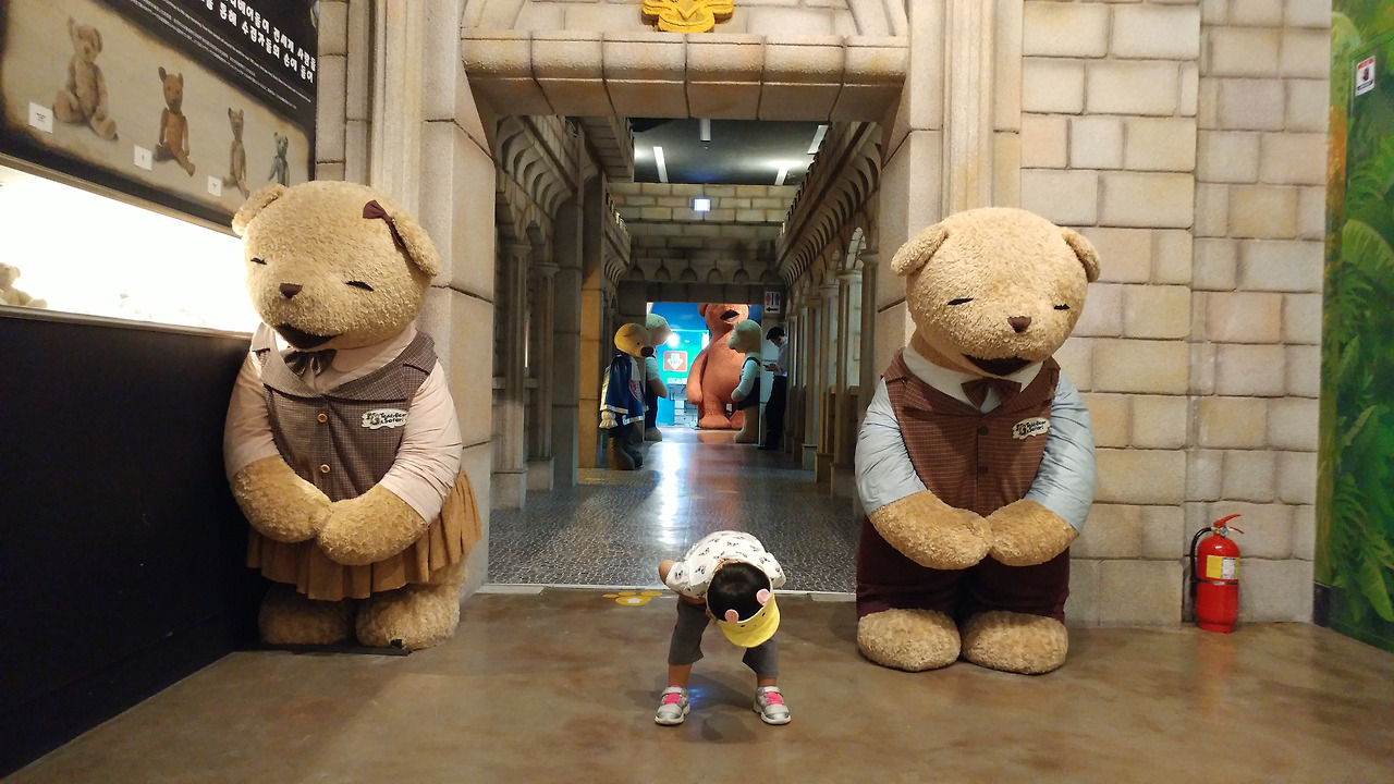 이미 수많은 관광버스들이 주차되어 있었다. 안이 꽤나 시끌시끌하겠구나 예상하며 안으로 들어갔다. 곰돌이 인형들을 보러 갈 거라고 말해줬는데 의외로 1층에는 테디베어 말고도 많은 동물 인형들이 실 사이즈에 전시되어 있었다. 동물원을 좋아하는 아이이니 오히려 잘됐구나 싶었다.