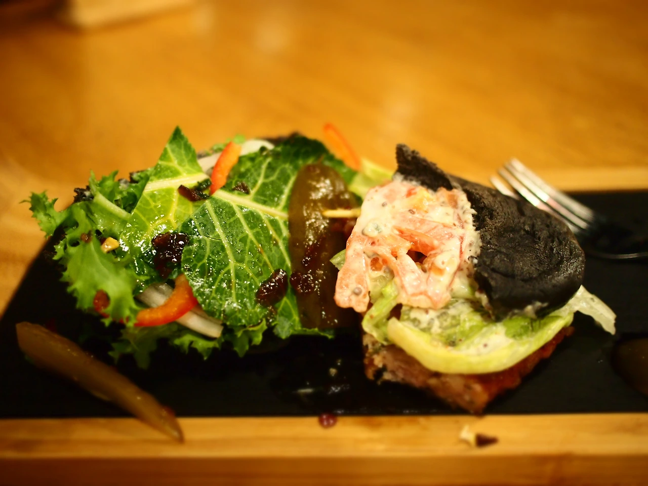 두 명의 청년이 있었는데, 한 명은 주방을 담당하고 다른 한 명은 홀을 담당했다. 한 명은 무뚝뚝했고, 한 명은 친절했다. 둘 모두 아직 식당 운영에 미숙해 보였지만, 어쨌든 최대한 애를 쓰는 모습이 보였다. 밥을 먹이고 싶었으나 아이가 고른 것은 떡갈비 샌드위치. 까만 빵이 마음에 든다니 그걸로 주문했다.