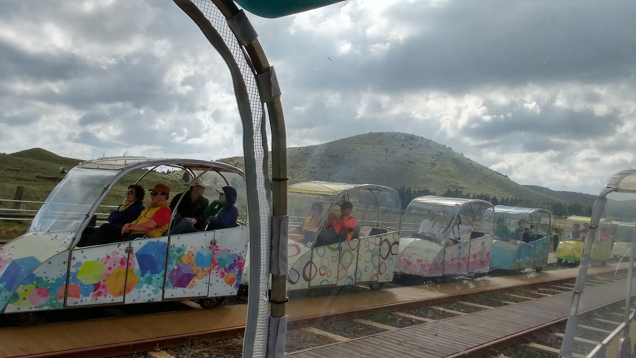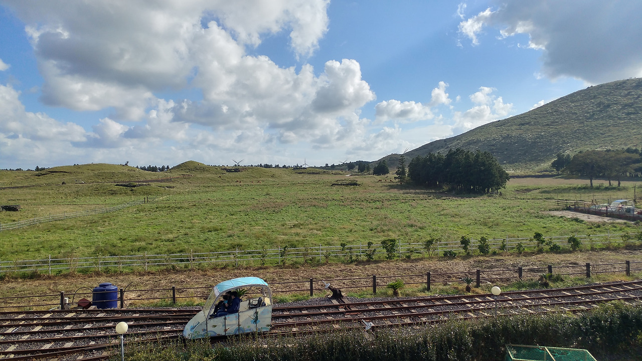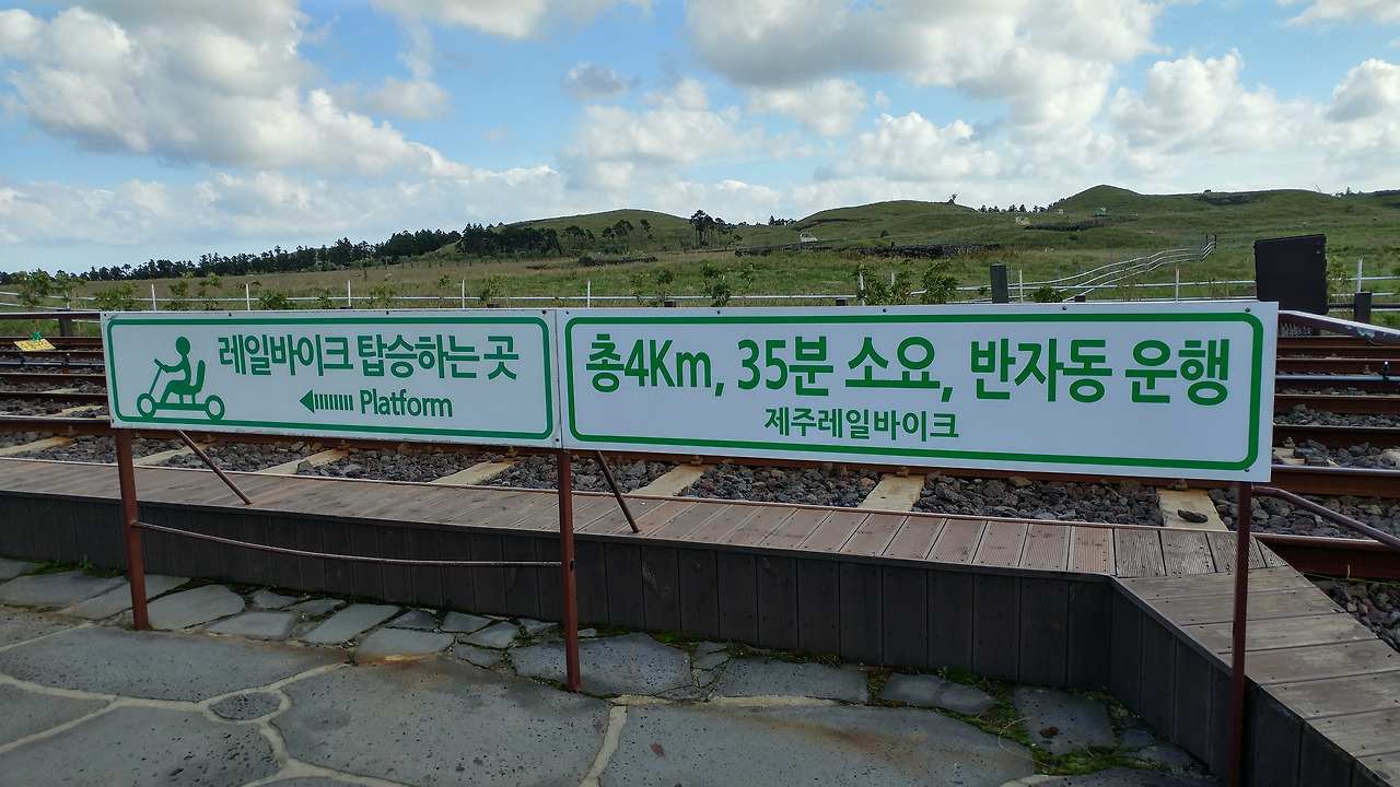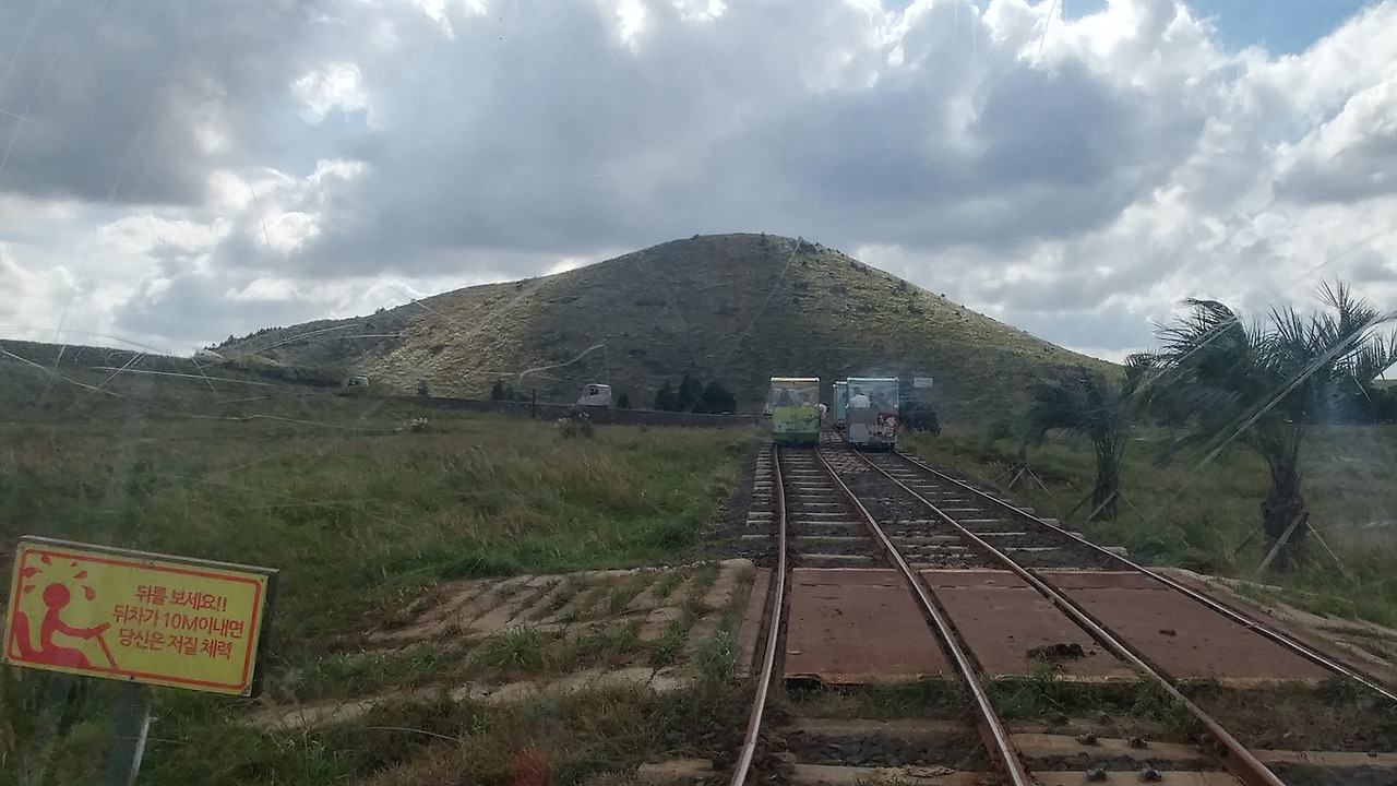 오름 곁을 돌아 레일바이크 탑승장에 도착했다. 소셜에서 구매하면 3시간 후 사용 가능하다고 했는데 약 30분 정도 먼저 와서 바코드를 내밀었더니 별말 없이 표로 바꿔주었다.