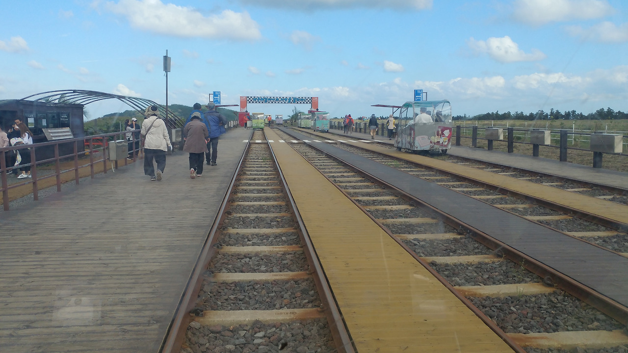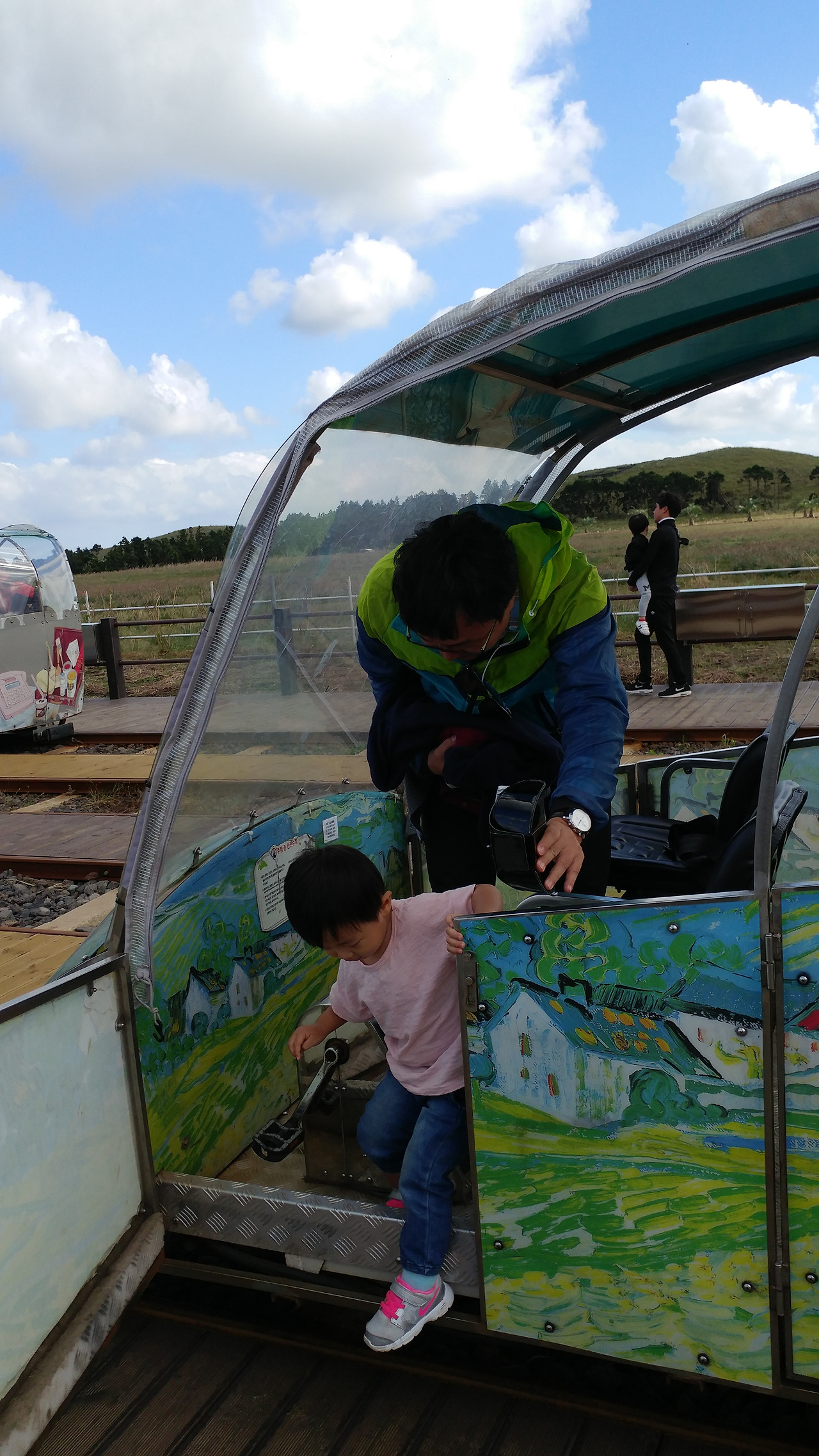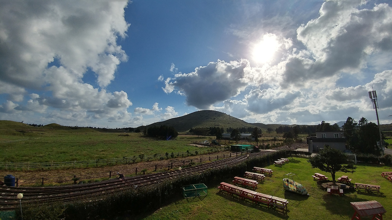 오름 곁을 돌아 레일바이크 탑승장에 도착했다. 소셜에서 구매하면 3시간 후 사용 가능하다고 했는데 약 30분 정도 먼저 와서 바코드를 내밀었더니 별말 없이 표로 바꿔주었다.