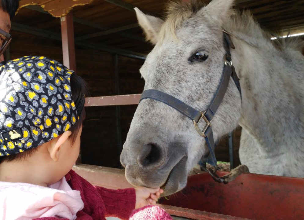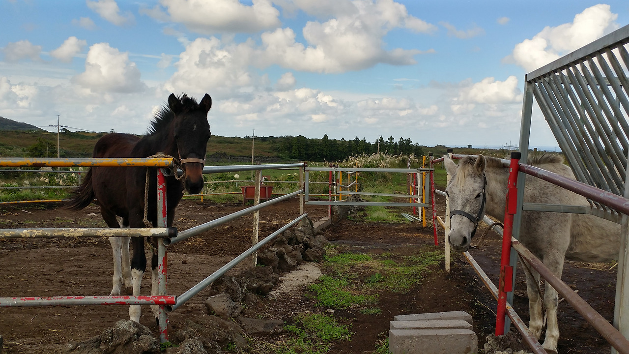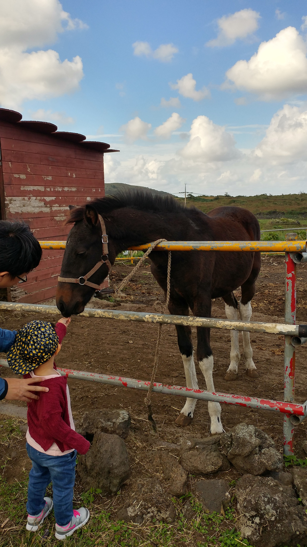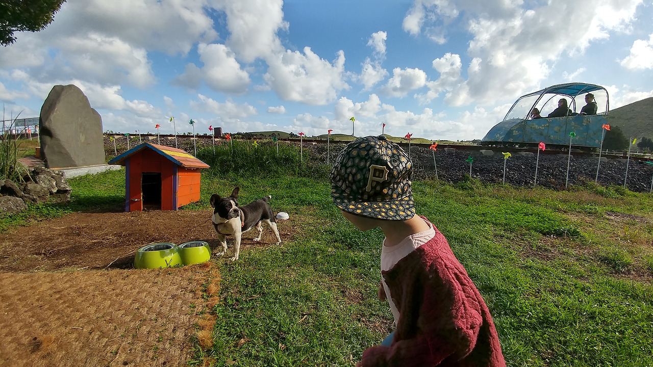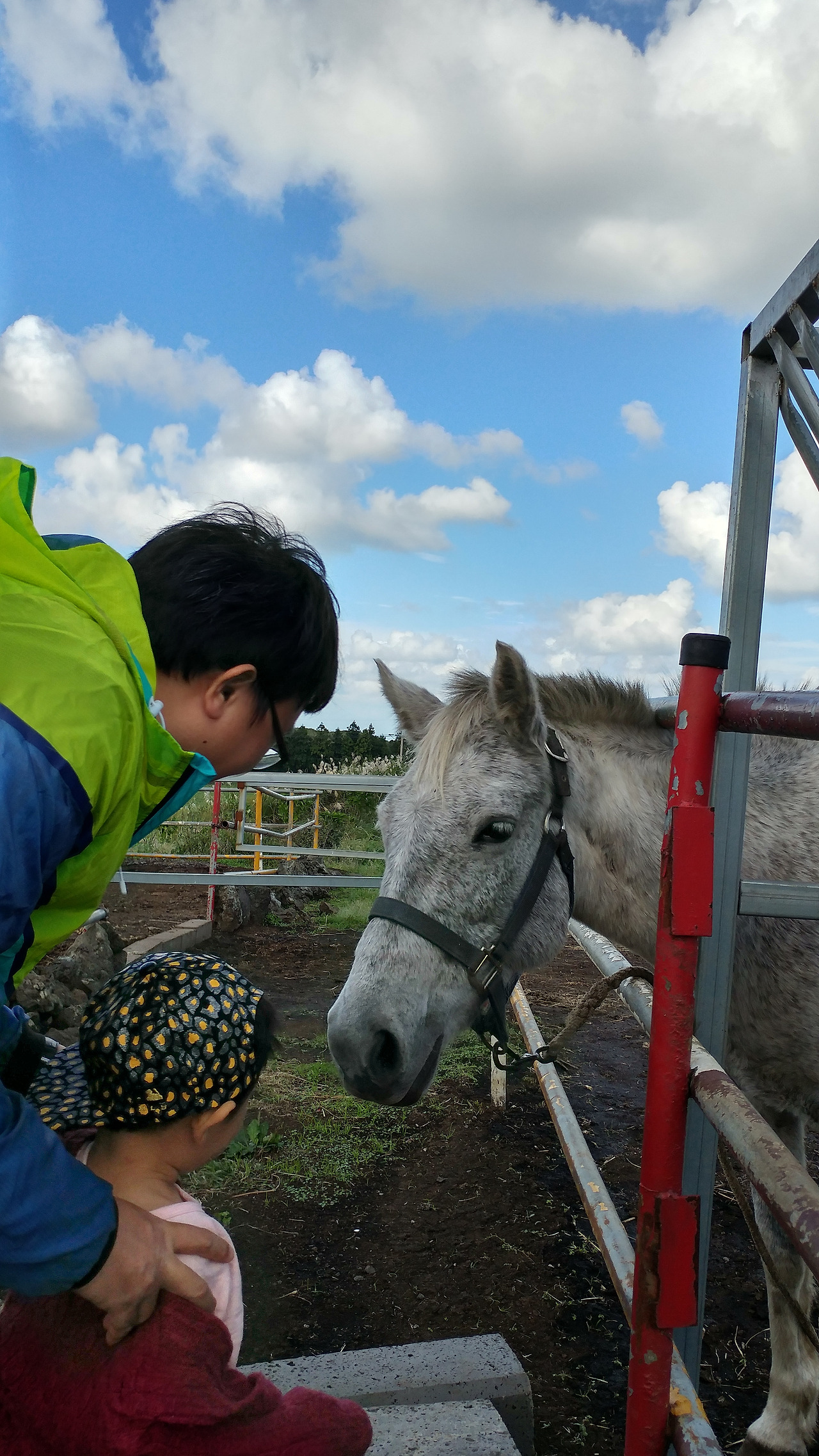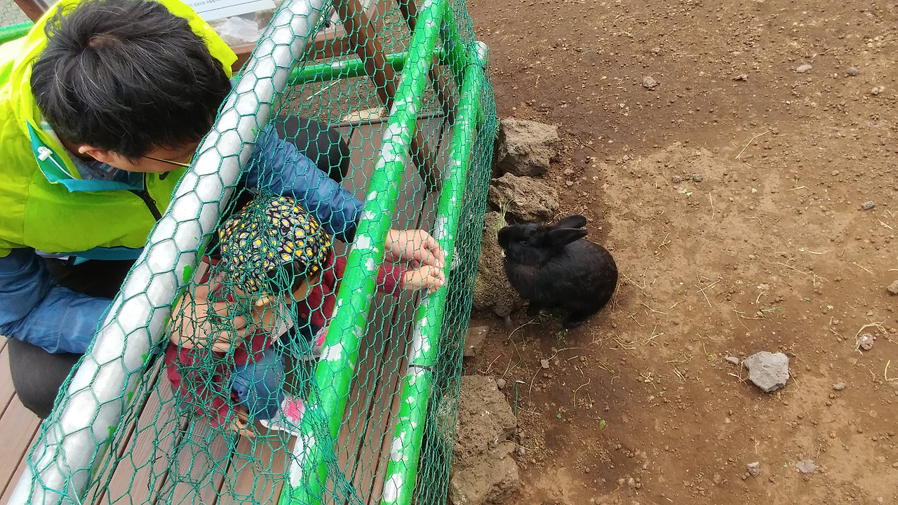 한 바퀴 돌고 나서는 승강장 근처에 있는 동물들을 구경했다. 말, 양, 흑염소, 토끼, 강아지, 새(공작같이 생겼는데 이름은 모르겠다. 겸이는 까투리라고 했다.) 등 다양한 동물들이 아이들의 눈길을 사로잡았다. 두 마리 말은 배가 고팠는지 겸이가 풀을 뜯어주니 주는 대로 잘 받아먹었다. 바로 옆에서 양들도 달라고 성화를 하기에 먹이를 주었는데 곁에 있던 흑염소 한 마리가 빼앗아 먹었다. 이후에도 흑염소는 뿔로 들이받으며 양에게 향하는 먹이들을 빼앗아 먹곤 했다.