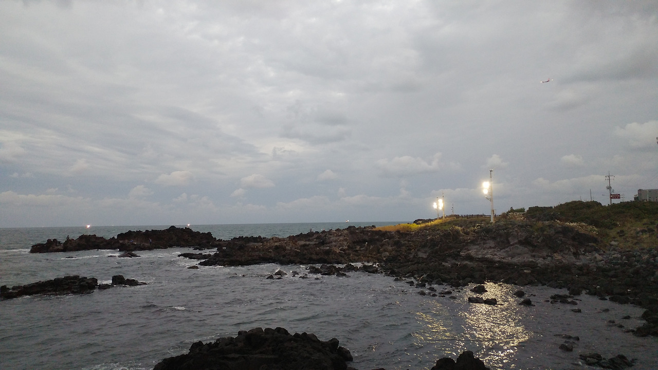 공항까지는 한 시간 정도 걸리는데 그러기엔 시간이 좀 남는다. 공항 근처에서 갈 만한 곳을 찾다가 어영공원이라는 곳을 알게 되었다. 용두암 근처 용담해안도로에 위치한 근린공원인데 사진 상으로는 바다에 면한 놀이터도 있고, 잠시 머물기에 좋을 것 같아 목적지를 어영공원으로 바꿨다. 남편이 졸려하기에 교대운전을 했는데, 제주시에 들어서니 차가 꽉 막혔다. 목적지가 10㎞인데 걸리는 시간은 30분이라니 정말 제주시내의 교통대란은 심각하다. 어쨌든 도착한 용담 해변도로는 주변에 카페와 음식점이 즐비해 있었지만 바다만큼은 일품이었다.