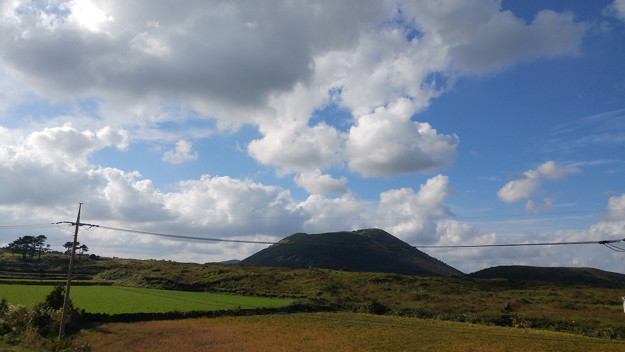 한참을 멋진 산속을 달리다 보니 이제는 마을이 나타났다. 마을을 지나 또다시 산길을 달리다 보면 저 멀리 예쁘게 봉긋한 오름이 눈에 보인다.