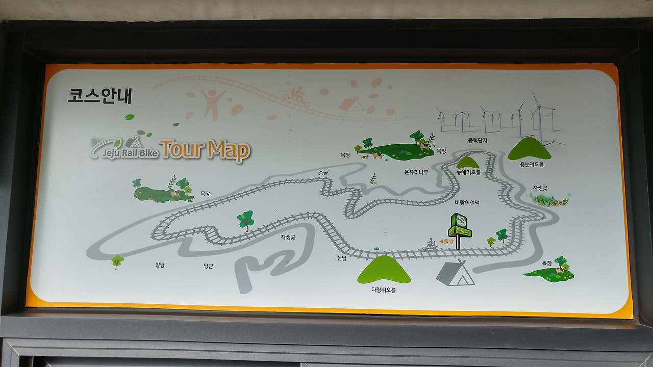 ‘레일바이크’하면 떠오르는 건 정선이고, 허벅지가 후들후들할 정도로 페달을 밟아야 하는 그런 모습이 연상되어 조금 걱정되기도 했지만, ‘기찻길로 가는 자전거’라는 설명에 겸이가 아주 마음에 들어해서 망설이지 않고 선택했다. 검색해보니 ‘용눈이오름’ 쪽이다. ‘용눈이오름’은 ‘오름을 좋아하는 사람들이 추천하는 1위의 오름’이라는 말을 들었던 터라 기대가 되었다.