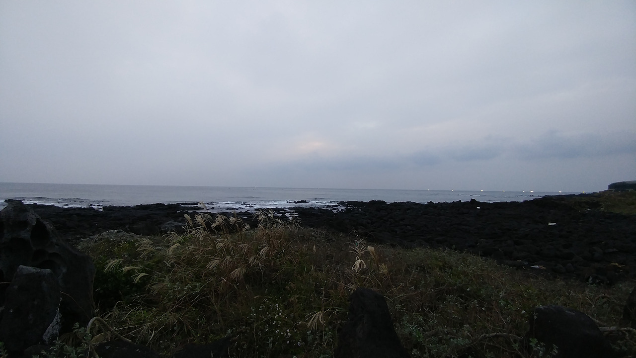 카페 쪽 해변은 너무 부산하니, 좀 떨어져서 그 근처이되 바위가 제법 평평하고 사람들이 잘 오지 않을 거라 생각되는 곳에 자리를 잡았다. 날이 아까보다 더 흐려져서인지 바다는 쓸쓸해 보인다. 처음 제주를 찾았을 때 이 한담해변이 너무 마음에 들어 그 찬바람을 온몸으로 받으며 멍하니 앉아 검은 돌과 짙푸른 바다를 지켜보던 기억이 났다. 그 바다는 나를 삼킬 것처럼 청청했는데, 오늘의 바다는 힘없는 늙은 아비같다.