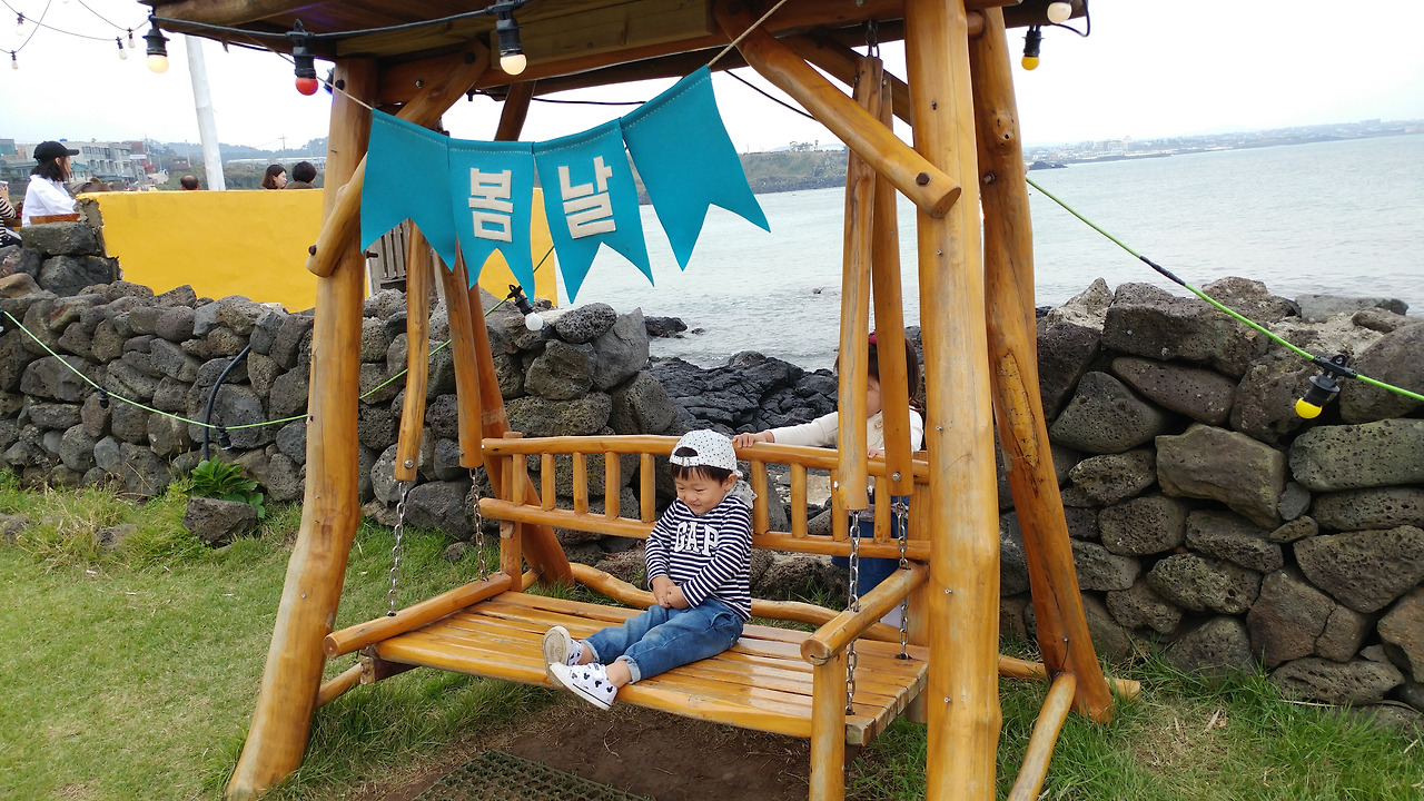 두 채를 연결하여 만든 카페건물의 끝 마당은 바다보다 한층 위여서 바다를 내려다 볼 수 있는 테라스 같은 느낌을 주었다. 그곳에도 몇 개의 테이블이 놓여 있었는데, 우리는 계단을 내려가 그네가 보이는 마당, 카페울타리의 최남단이자(남쪽인지는 솔직히 모른다), 바다와 바로 면한 모퉁이로 갔다.