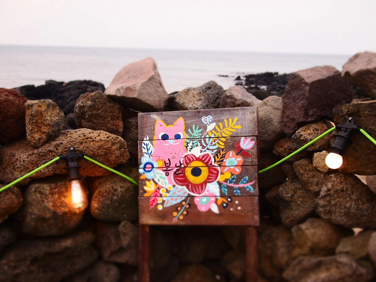 등받이가 없어 사람들이 앉지 않는 듯한데, 거기에 자리를 잡고 나면 그 자리가 최고의 자리라는 사실을 알게 된다. 카페 입구를 제외한 카페의 전면을 한 눈에 볼 수 있고, 오른쪽으로 고개를 돌리면 바로 바다이며, 돌담에 커피잔을 올려두면 그 자체로 멋진 그림이 되는 그런 자리였다.