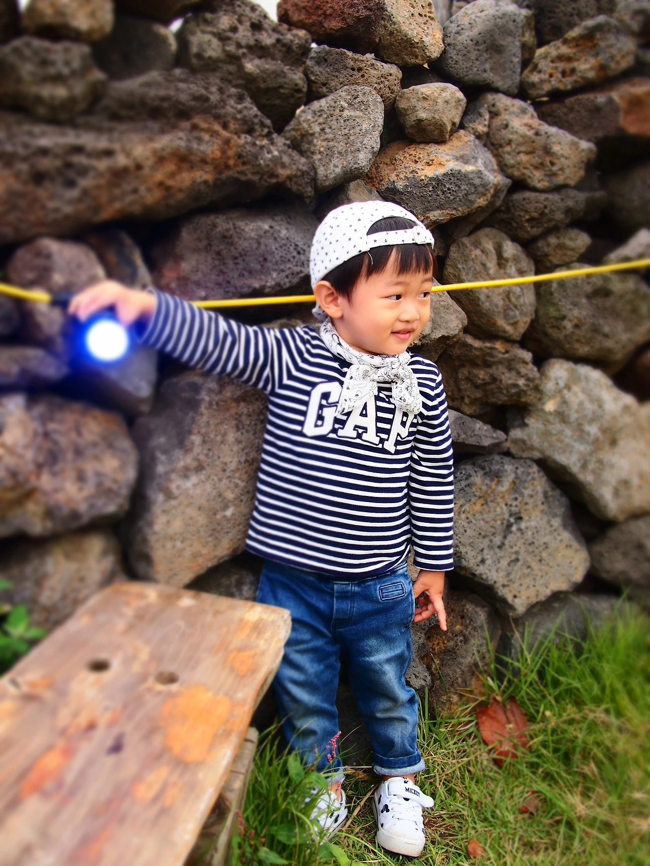 아이는 돌담에 둘러진 색색깔 전구를 만지며(위험하지만, 지켜보았다. 남자아이들은 하지 말라는 말보다는 안전하게 노는 방법을 알려주는 것이 더 효과적이라고 들었기 때문이다.) 자기는 경찰관이니 나더러 도둑을 하란다. 지칠 때까지 반복해야 놀이는 끝이 난다.