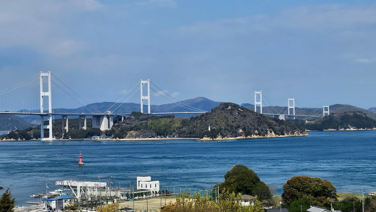 이제 본격적으로 이번 여행의 하이라이트인 시마나미 해도(しま나미海道)에 올랐다. 렌터카의 창문을 내리자 바다 냄새 섞인 신선한 봄바람이 차 안으로 밀려든다. 섬과 섬을 잇는 거대한 다리들을 하나씩 건너는 드라이브는 마치 바다 위를 항해하는 듯한 착각을 불러일으켰다.