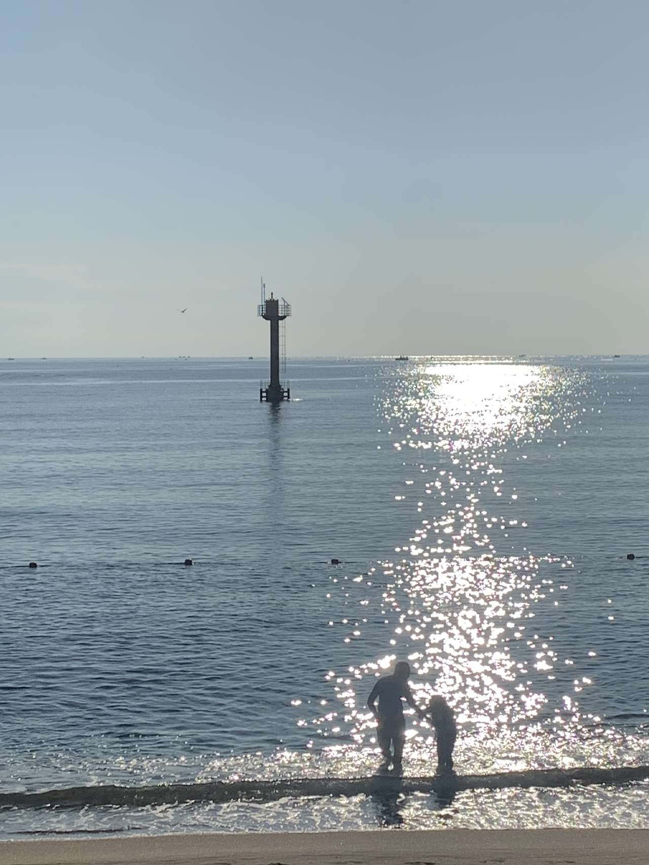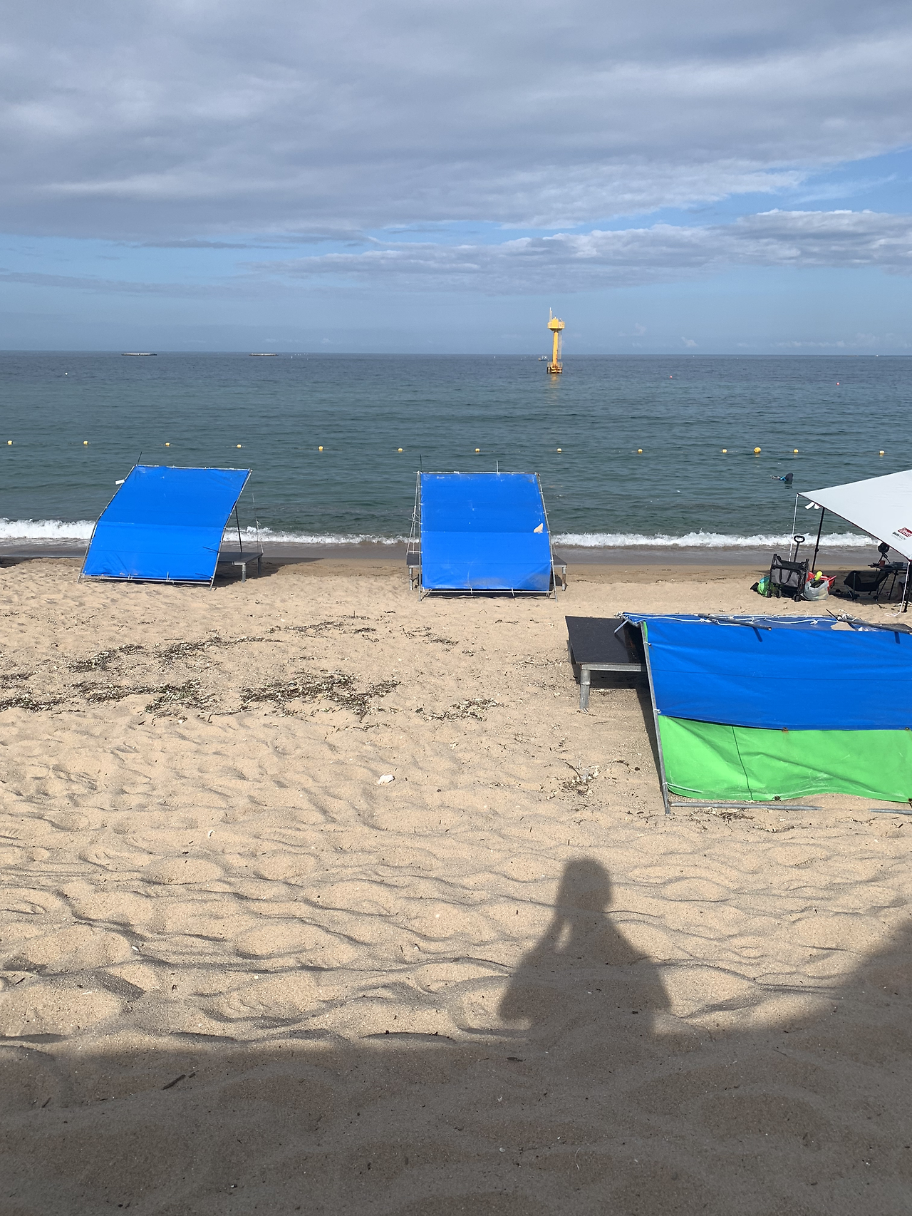 그래도 천천히 목표한 거리를 완수하고, 시원하게 음료를 들이키며 해변을 바라보다 마주한 광경.