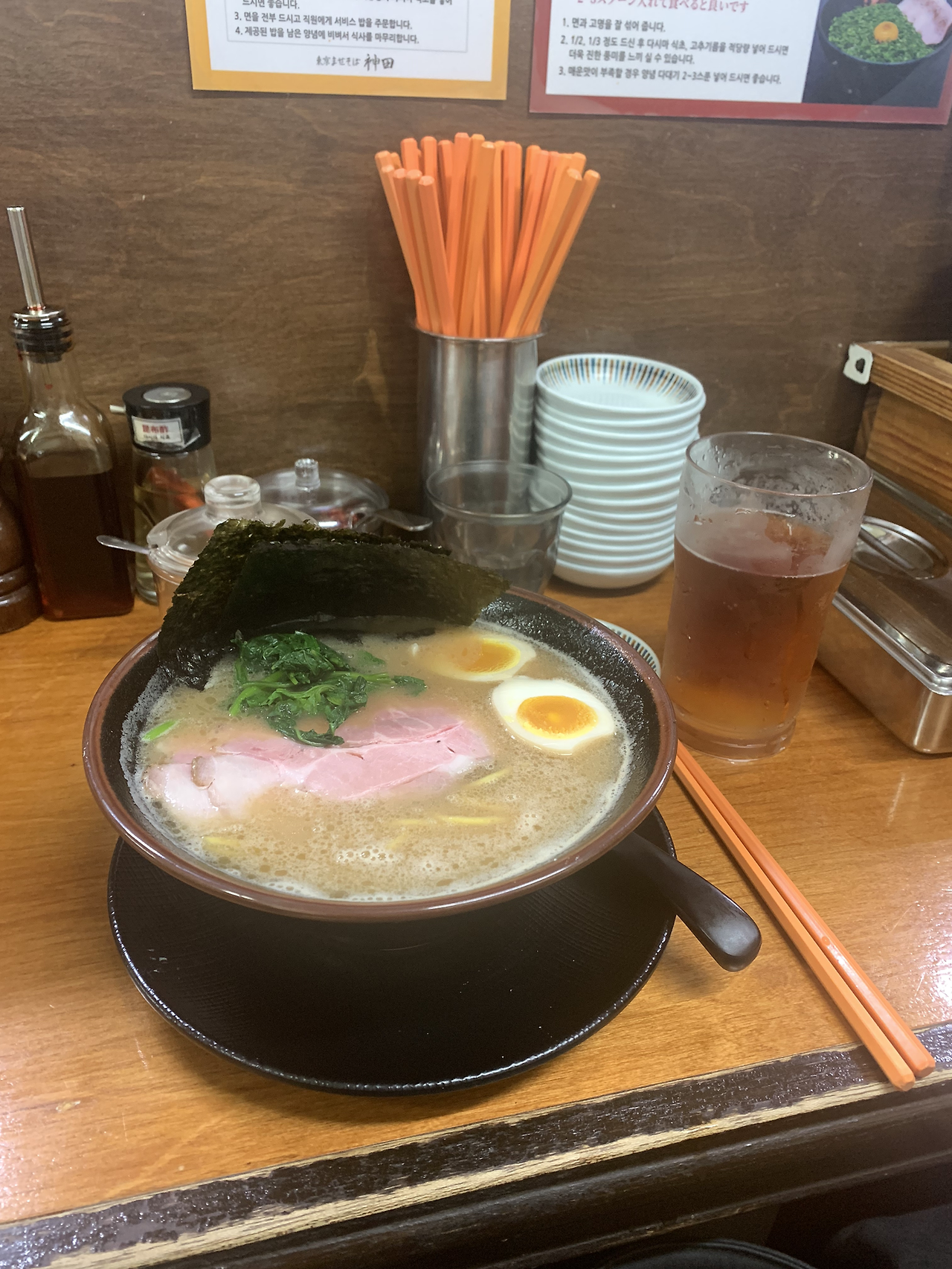 버스 정류장에서 내렸는데, 이대로 집에 들어가기 싫다는 생각에 버스를 환승해서 라멘에 맥주를 마셨다.