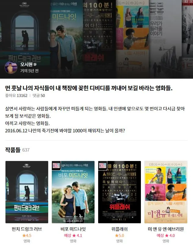 그럼에도 불구하고 나의 숲은 자라고 있다. 아직 조악하고 정제되지 않은 것들 투성이지만 엄마의 라디오와 아빠의 신문처럼 나의 어깨 너머 있는 작은 숲을 통해 누군가는 또 다른 숲을 꾸리고 있을 것이다. 왓챠에 이런 플레이리스트가 있다. ‘먼 훗날 나의 자식들이 내 책장에 꽂힌 디비디를 꺼내어 보길 바라는 영화들. 볼 때마다 소름이 돋는 작명이고 그 미래를 그리는 것만으로도 행복해진다. 10년 후, 20년 후에도 그 시대에 걸맞은 서사와 관점을 지닌 영화들이 만들어질 것이고 그것을 소비하는 방식도 다양해질 것이다. 어떤 방식이든 간에 누군가와 그 경험을 공유한다는 것은 멋진 일이고 혼자 고독하게 소비하는 것과는 또다른 매력이 존재한다. 누군가 나의 숲에 들어와 디비디를 보려 한다면 기꺼이 자리를 내어 줄 것이다. 그렇게 나의 숲과 타인의 숲이 이어지고 타인의 숲과 또다른 누군가의 숲이 이어진다면 질 들뢰즈의 말처럼 언젠가 세상이 영화가 될 수 있지 않을까. 영화가 세상이 될 수는 없지만 언젠가 세상은 영화가 될 것이라고 굳게 믿는 이들이 오늘 본 영화, 오늘 들은 음악, 오늘 쓴 글들을 소중히 여기고 가꾸어 나가면 좋겠다. 당신이 자라온, 가꿔온 숲을 누군가 조용히 찾아올 테니.