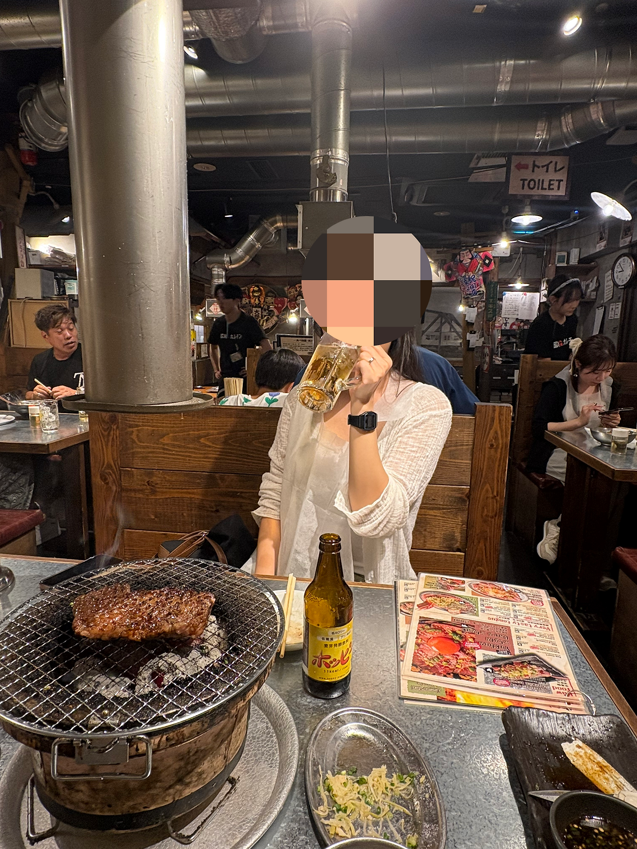 위장이 후달달 떨리면서 소화가 다 됐는지 배에 기름칠 좀 하라고 신호를 보내는 것 아닌가. 그래서 도착한 야키니쿠 가게. 이름은 ‘쇼와 호르몬 야키니쿠’. 갈빗살, 등심, 네기마요, 안창살 정도 구워 먹은 것 같다.