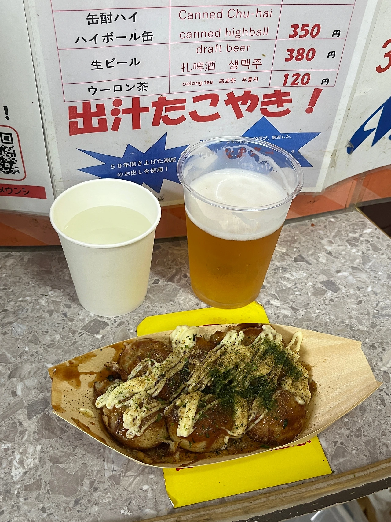 ‘세계에서 가장 작은 타코야끼 가게’라는 별칭답게 주인분께서 정말 작고 작은 공간에서 쉴 새 없이 타코야끼를 만들고 계셨다.. 너무너무 열악한 환경에서 탄생한 타코야끼는 명작이었다. 짝꿍과 12알을 호호 불면서 순식간에 먹어치우고 나왔다.
