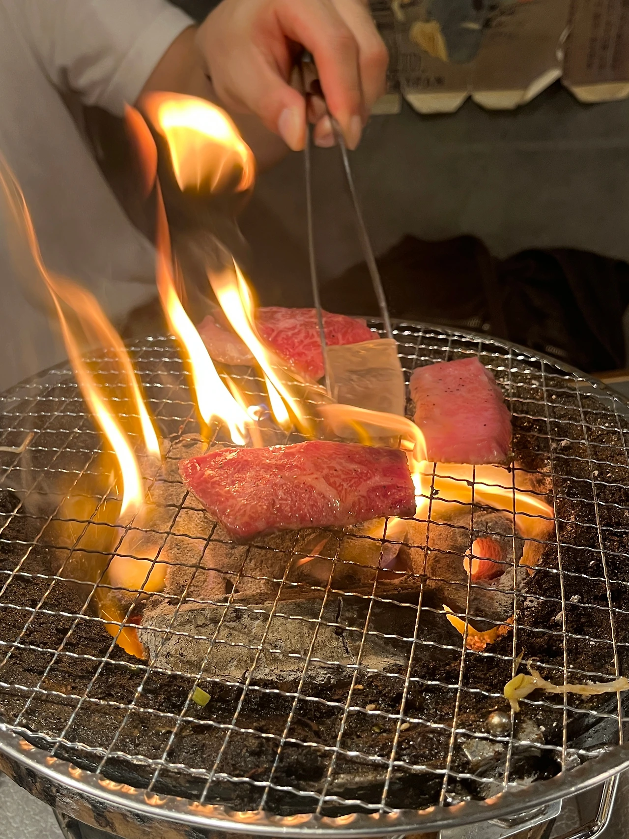 옆테이블의 현지인 아저씨들이 불길을 안 잡고 직화로 멋들어지게 구우시길래 따라 했는데, 내가 하면 직원 분들이 달려와서 바로 얼음을 투척해 주셨다. 나도 잘할 수 있는데...