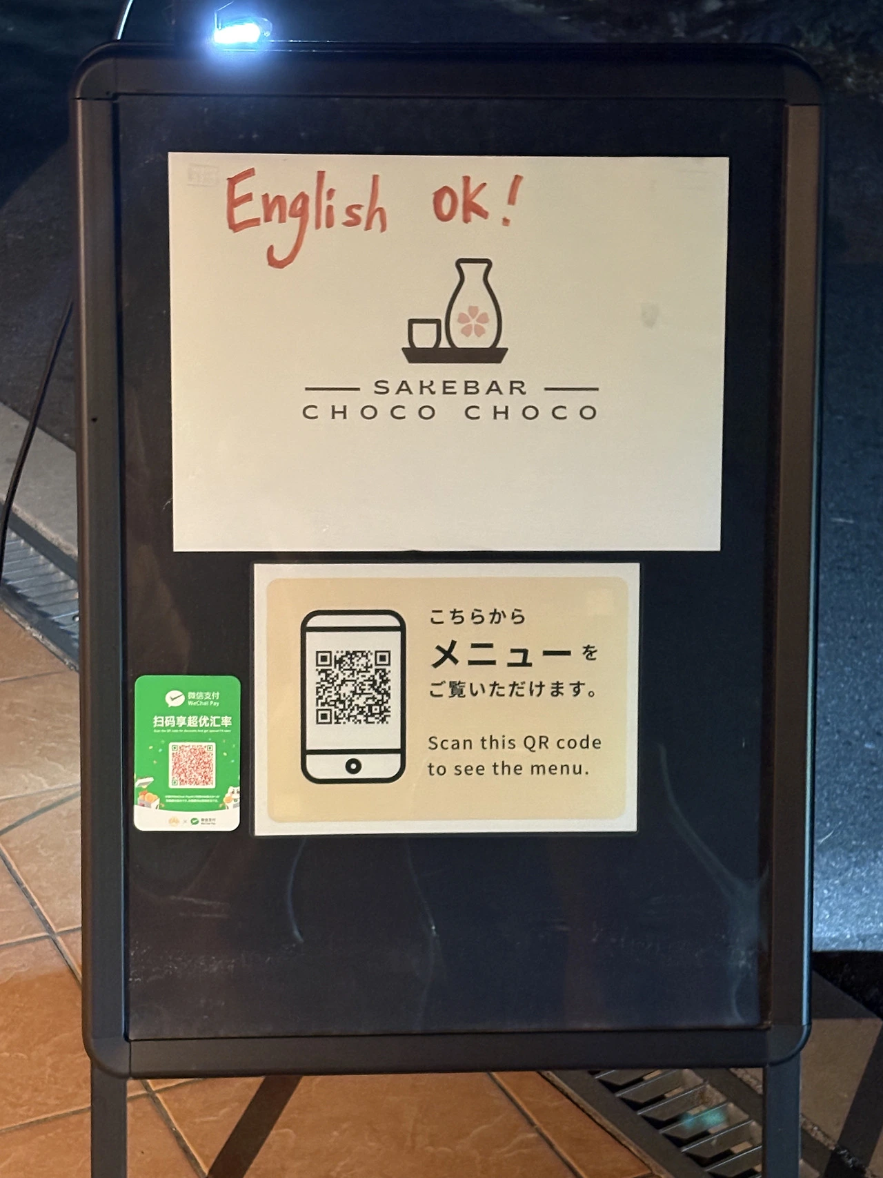 이제는 무르익어가는 밤이 아쉬워진다. 타지에서 밤을 보낸다는 사실이 설레기도 하지만 흘러가는 시간이 너무 아쉬워 허전한 마음을 사케로 달래보고자 숙소 근처의 사케바로 향했다. English ok!라는 쾌남의 향기가 가득 하나 사케바 초코초코라는 다소 깜찍한 가게 이름.