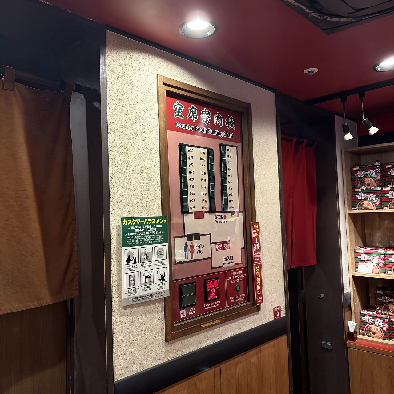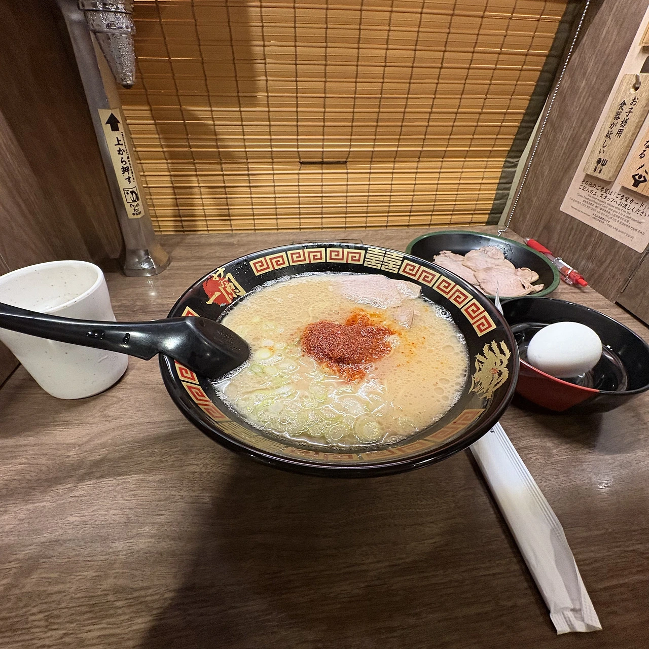 다행히도, 49명을 다 기다리지는 않았다. 25명쯤 됐을 때 내점하라는 안내가 왔다. 그리 오래 기다리지 않고 이치란에 입성할 수 있었다.