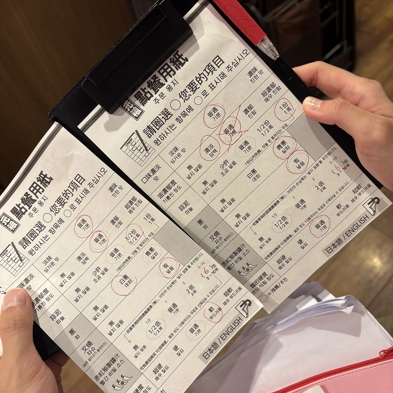 한국인은 보통 5-7배로 먹는 것 같아서 남들 먹는대로 비숫하게 주문을 해봤다. 짝꿍도 나도 6배로 먹었는데, 생각보다 매콤해서 놀랐다. 킨류와 비교하자면 이치란이 조금 더 우위에 있지 않나? 하는 개인적인 생각!