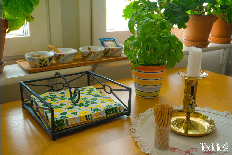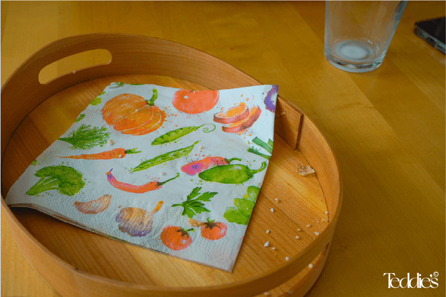 아니타가 내어준 빵과 커피로 피카 타임을 가지던 어느 날. 피카 빵을 비워내고 나니 예쁘장한 종이 한 장이 살며시 모습을 드러냈다. 마치 누군가 아니타의 주방에 놓인 식재료들을 보고 그린듯한 그림이 그려진 냅킨이었다. 냅킨 자체가 그리 신기한 물건인 건 아니지만 누군가의 집에, 그것도 부모님 연세의 노부부가 사는 집 식탁에 자연스레 올려져 있는 이 광경이 조금 신기했다.