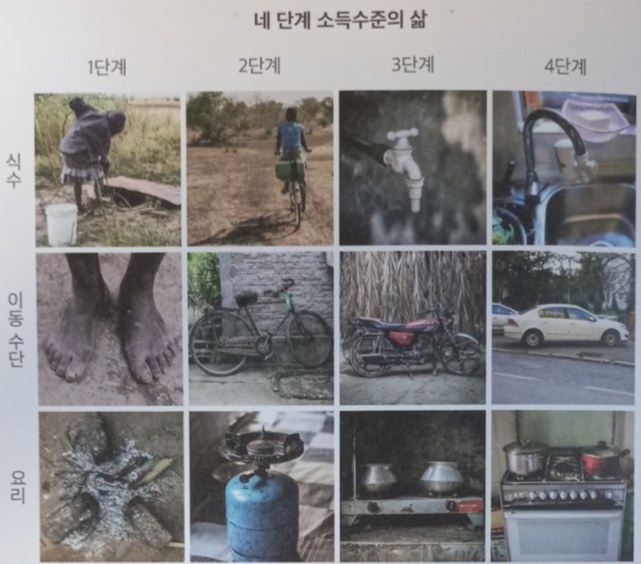 세상을 올바르게 바라보는 시선을 길러주는 책 <팩트풀니스>에 따르면 세상은 개발도상국과 선진국 같은 이분법이 아니라 개개인의 소득 수준에 따른 4단계로 나눌 수 있다고 한다. 잘 사는 나라, 못 사는 나라로 나누는 건 4단계의 사람들이 만들어낸 편협한 시선이라는 거다.