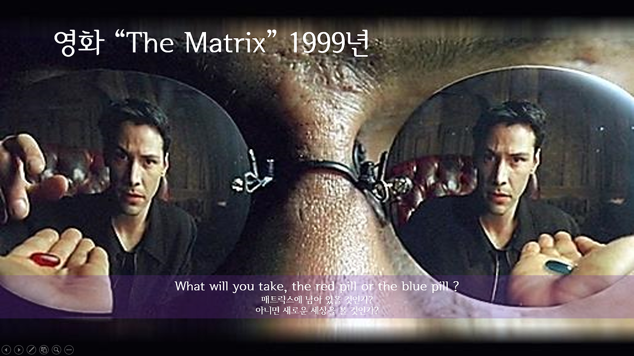 영화에서는 명확하게 청중에게 어떤 선택을 할 것인지 묻기도 합니다. 매트릭스의 네오에게는 모피어스의 아름다운 거짓 현실에 안주 할 수 있는 파란알약과 힘들지만 진실을 볼 수 있는 빨간알약의 선택이 있었고 아바타에서는 제이크에게 미쳐 몰랐던 가치들을 느끼게 해준 나비족을 선택함으로서 이야기를 풀어 내고 있습니다.