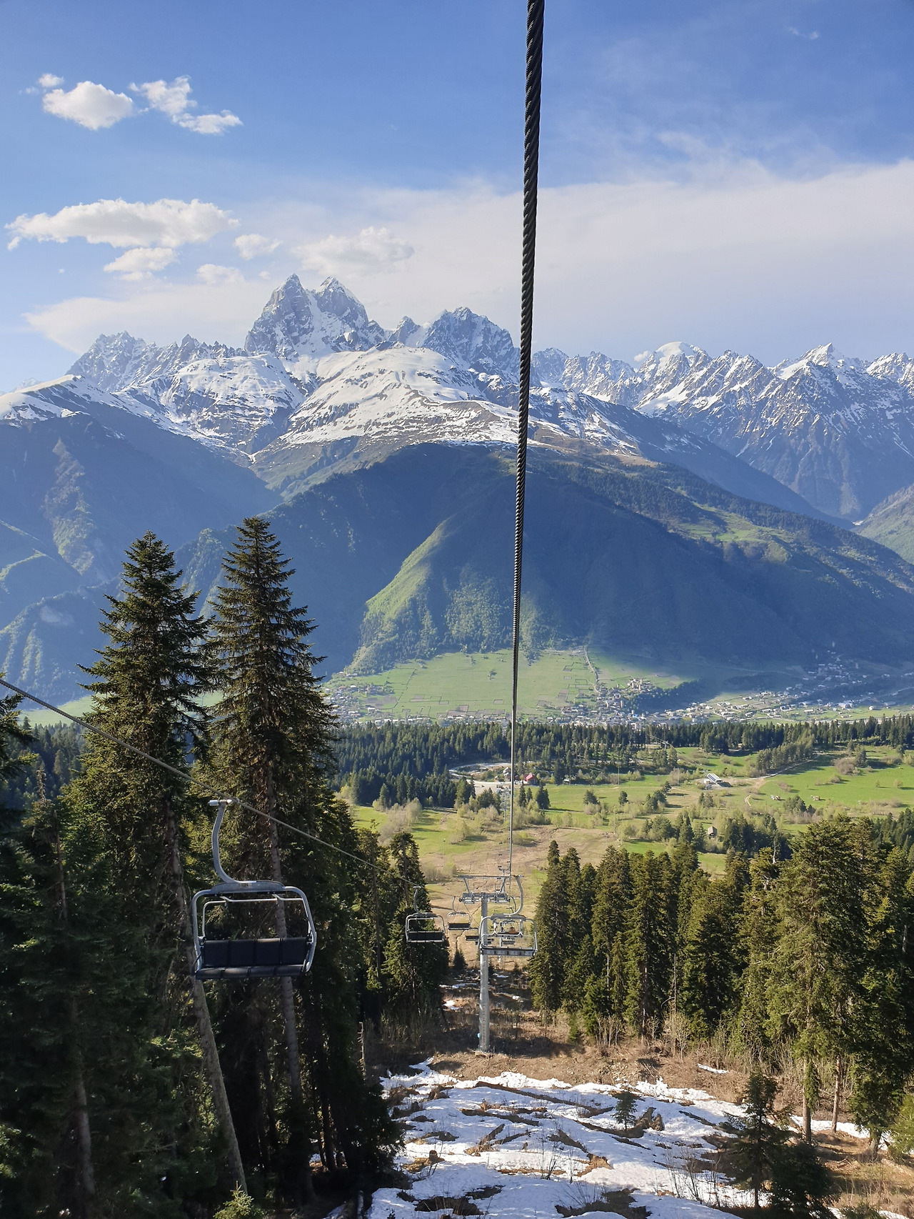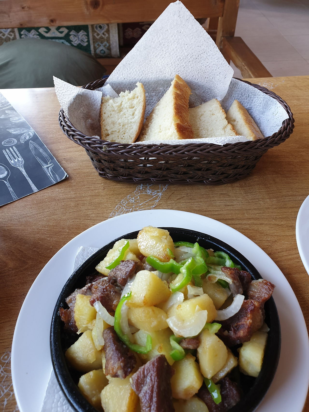 조금 쉬다가 하츠발리 리조트에 리프트를 타러 가기로 한다. 마을 박물관 뒤편에서 출발하는 리프트가 시즌에 따라 운행하지 않으면 약 8km 되는 언덕을 택시나 걸어 올라가서 타야 하기도 하는데 이 기간에는 정말 다행히 마을부터 운행을 했다. 가는 길에 전에 먹었던 나의 메스티아 맛집 Ailama에서 오자쿠리라는 음식을 시켜먹는다. 고기와 탄수화물까지 먹을 수 있고 처음으로 입에 잘 맞는 조지아 음식이다.