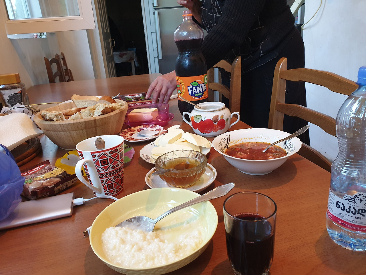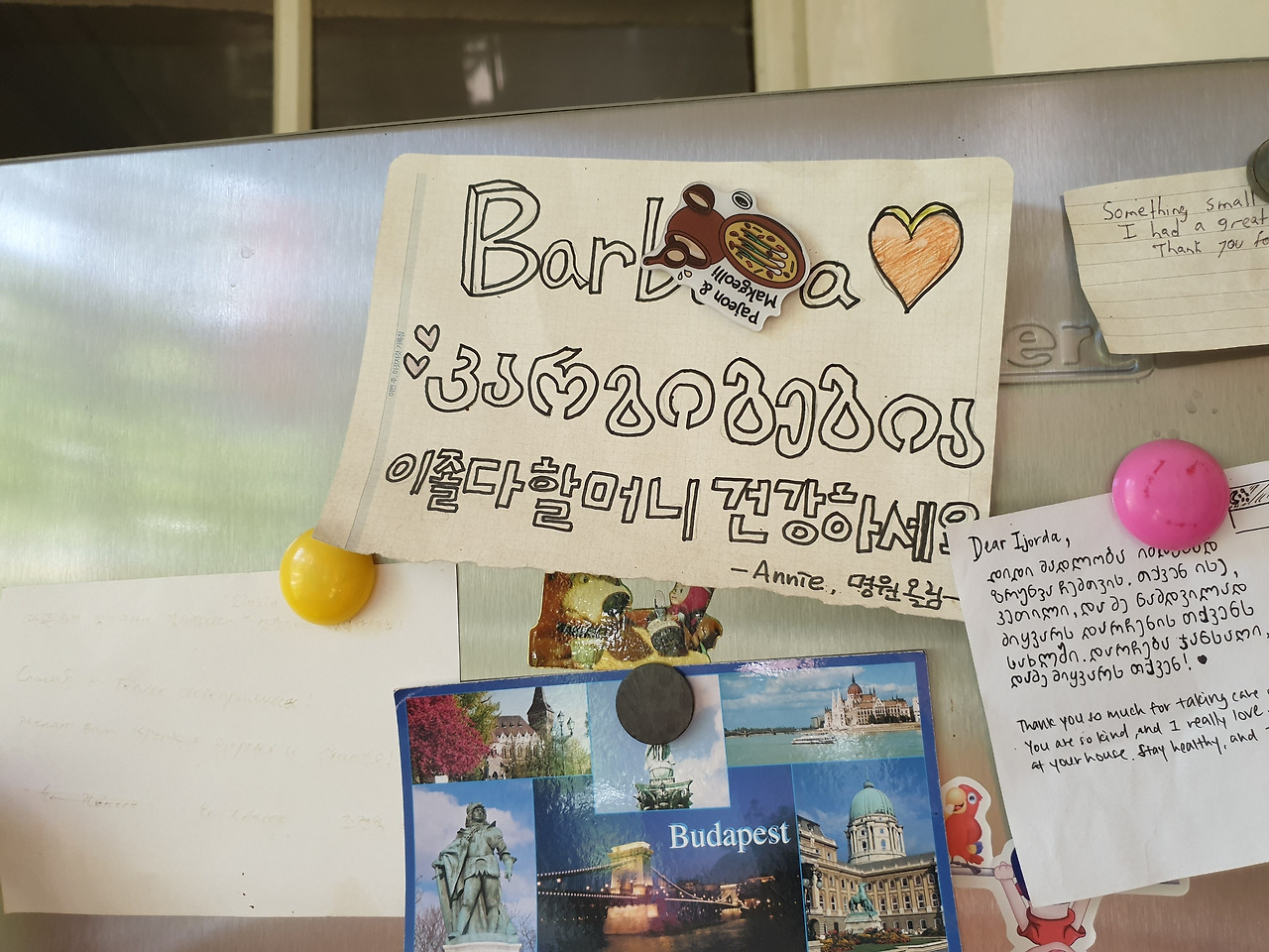 아침 일찍 준비하고 나와서 새로운 게스트 하우스를 찾아 돌아다녔다. Sweet night 하고 Barbara 였는데, 바바라 말고는 인기척이 없어서 바바라에 들어갔다. 무릎이 불편하신 할머니가 한 분이 나오셨는데 역시 영어는 전혀 통하지 않고 방을 좀 보기로 했다. 냉장고에 한글로 할머니의 건강을 기원하는 글귀도 눈에 띈다. 트빌리시에 있다는 따님과 통화 후 장기 투숙할 시 할인해주겠다는 약속을 받고 할머니에게 가방을 가지고 오겠다고 바디랭귀지로 설명 후 떠났다.