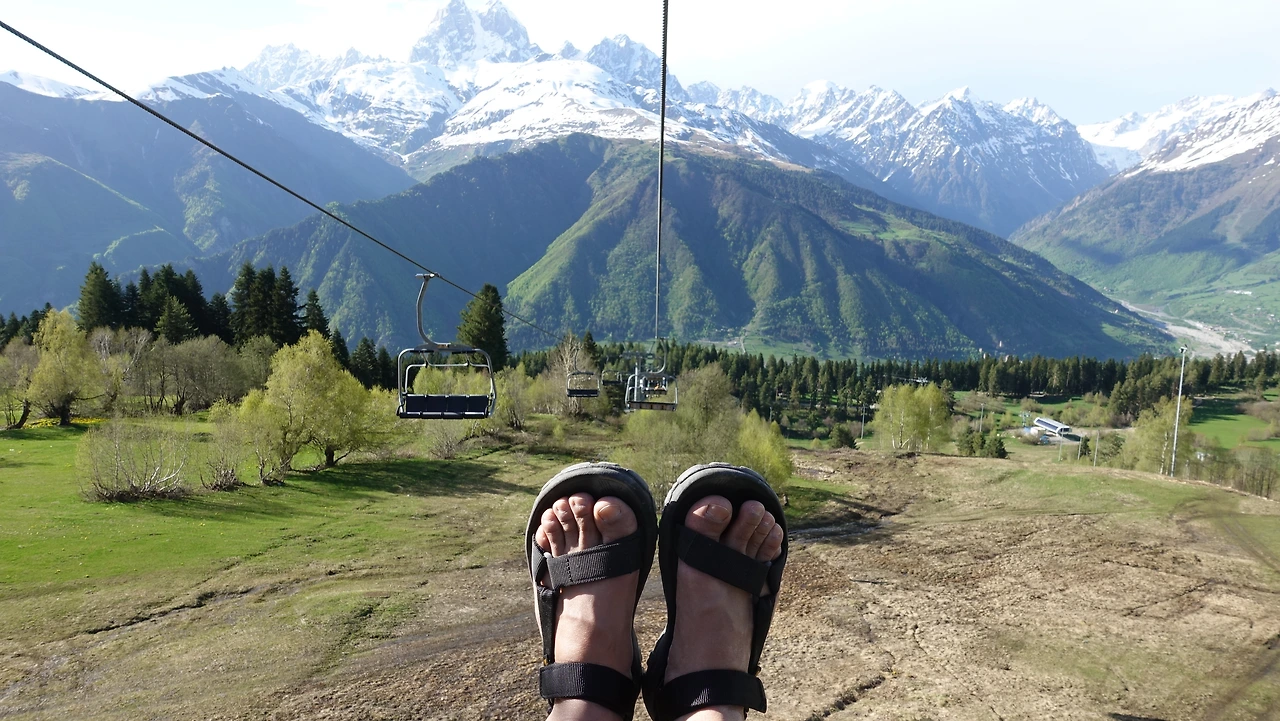 야무지게 끝내고 하츠발리 리조트 쪽으로 간다. 리프트가 마을에서부터 보이기 때문에 그냥 몸이 가는 대로 따라가면 된다. 다리를 하나 건너고 구글 지도로 박물관 쪽으로 향하다 보면 이정표가 나오기도 한다. 금요일이었고 박물관을 잠깐 들렀는데 주말에는 입장료가 무료라고 한다. 화장실만 이용하고 이정표를 따라간다. 15분 정도 가볍게 걸으니 매표소가 나오는데 분위기가 심상찮다. 전기 문제로 지금은 탈 수 없고 언제 탈 수 있을지는 모르겠다는 직원이 말이 있었는데, 고쳐져서 탄다지만 또 타다가 문제가 생기면 어쩌나 하는 불안감이 엄습한다. 30분 정도 기다렸는데 다른 사람들이 타기 시작한다. 러시아 사람들은 뭐라 말하더니 타기 시작한 것인데, 이것이 불친절해서 그런 것 같지는 않고 단순 언어 문제 일 것이라고 서운한 마음을 가라앉힌다.
