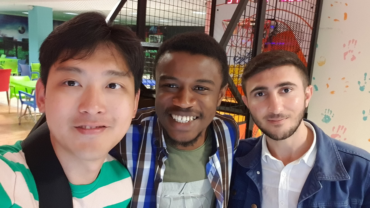 그러다가 지하 식당 겸 보드게임 겸 당구장 겸 플스도 있는 곳에서 만난 한 가나 친구와 말을 트고 영어로 오랜만에 이런저런 대화를 했다. 이 곳에서 유학 중인데 자기 친구들이 한국 사람들 좋아한다고 나와 사진을 찍고 싶어 했다. 그래서 같이 사진을 찍고 인스타도 교환하고 이 친구가 카디건을 찾는 것도 도와주었다. 그리고 에네스가 준비한 스케줄을 따라 친구를 기다리고 있는데, 어떤 한 여자분이 말을 걸어왔다. 한국말이 유창한 그녀는 도서관에서 공부 중이다 멀리서 한국인인 것 같아 말을 걸고 싶어 왔다고 했다. 에네스와 그 친구가 기다리고 있어서 간단히 인사하고 반갑게 카톡만 나누고 헤어졌다.