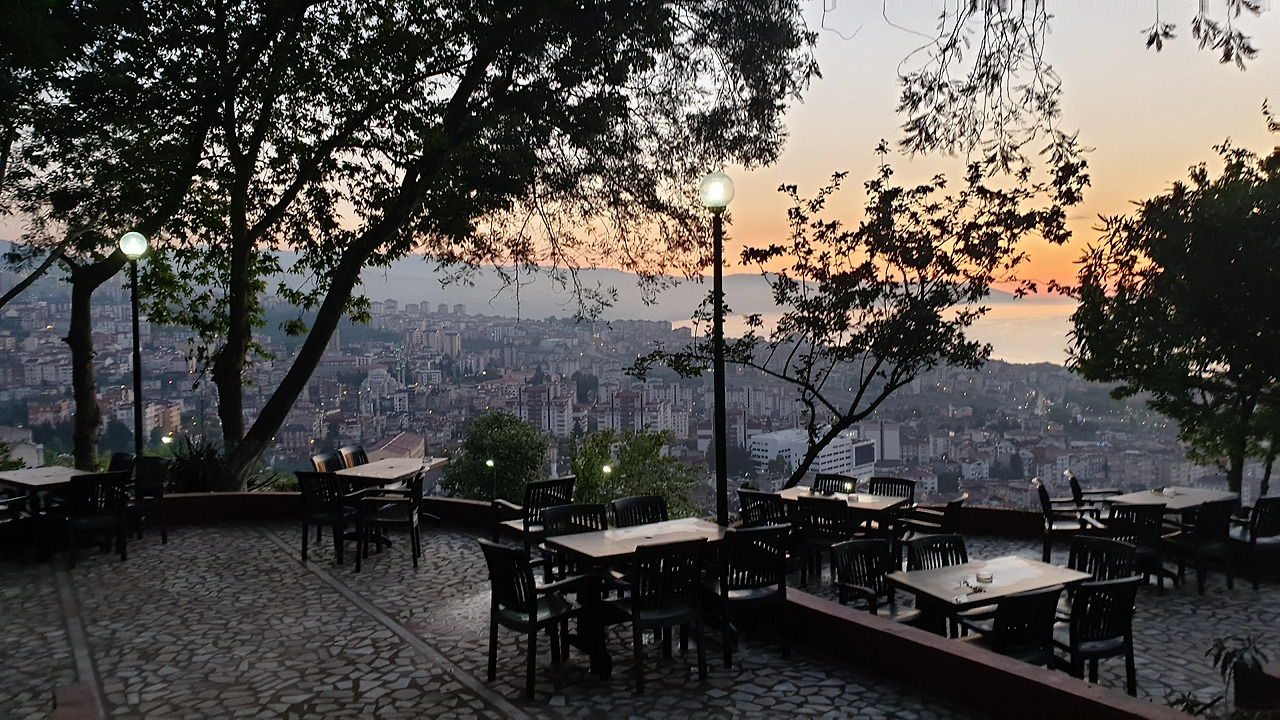 트라브존의 남산 같은 곳인데, 산은 아니고 언덕 위 경치가 좋은 곳이다. 물어물어 돌무쉬를 타고 가는데 어렵지 않다. 미리 기사님께 잘 말씀드리면 딱 좋은 곳에 내리는데, 카페는 영업을 하지 않는다. 정말 경치가 좋고 바람이 좋아서 거의 3시간을 앉아 있었다. 앉기 좋은 의자들이 주욱 있고, 라마단이 끝나가는 7시 30분 즈음이 되자 대가족들이 바리바리 음식을 싸와서 자리를 잡고 앉아 식사시간이 되기를 기다린다. 나도 8시에 터키 친구 큐브라를 만나기로 해서 시간을 맞춰 내려가는데 내려갈 때는 돌무쉬가 없어서 걸어갔다.