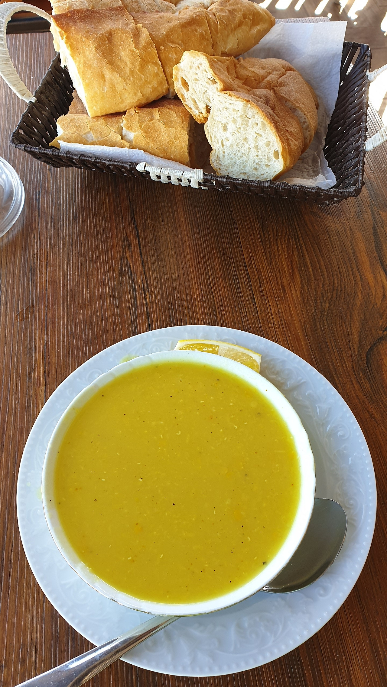 터미널 주변에는 아무것도 없었고 멀리 아라랏 산이 보이는데 누가 봐도 어마 무시한 웅장함을 뽐내는 산이 아라랏임을 알 수 있을 것이다. 터미널에서 이란 가는 버스나 알아둘 겸 물었는데 친절하신 터키 아저씨들이 돌무쉬를 타고 가야 한다는 얘기와 함께 환전을 해주겠다고 하는데 불안해서 환전은 거절했다. 어떤 아저씨가 마침 나가는 길이라고 같이 가자고 해서 따라나섰다. 당장 갈 맘은 없지만 어차피 말은 안 통했고 어디서 타는지를 확실히 해두기 위해서 따라나섰다. 돌무쉬는 그냥 택시 잡아 타듯이 길에 서서 손을 흔들어 잡아 타면 되기 때문에 어렵지는 않아 보였다. 터미널을 나오니 건너에 영업하는 식당이 있어 배를 채울 겸 자리를 잡고 수프를 주문해서 먹었다. 호스트가 9시 출근하면 와서 짐을 맡겨두고 가라고 했는데, 그 이후에 시간을 때울 시티센터와 정 반대이기 때문에 왔다 갔다 하는 것이 부담돼서 수프를 먹으며 시간을 때우고 고민을 했다.