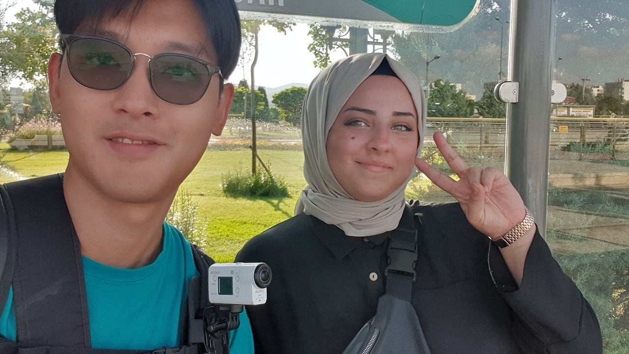 오래 달리지 않아 해가 지기 전 콘야에 도착했다. 에제가 마중 나왔고, 그녀와 반가운 포옹을 나왔다. 히잡을 절대 벗지 않는 친구인데 포옹은 되는 건가 싶어 혼란스러웠다. 밝고 친절한 친구다. 무슨 일이 있었냐면, 페이스북에 근처 터키 도시에서 버스 전복사고를 당한 한국인이 있었다. 마침 콘야 병원에 입원을 했다길래 여행에 미치다 페이스북에서 본 그분의 아이디를 에제에게 전달했고 그녀가 그를 집으로 데리고까지 와서 돌봤다고 한다. 단순히 한국인이었기 때문에 도와줬을 것 같은데, 집으로 데리고 올 정도로 착하다. 근데 그 남자분도 한 번쯤은 고맙다고 연락이 올법하다고 생각했는데 하지 않았다.