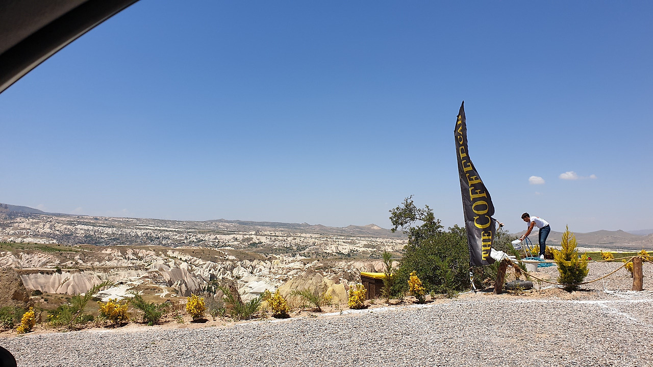 그러다 어떤 뷰포인트를 갔는데 카페도 있고 경치가 환상적이었다. 왜 이 곳을 이제 알았을까 아쉬울 정도, 그러고도 한 시간 정도 차를 더 몰았는데, 그냥 달리기만 해도 카파도키아 주변은 참 예쁘다.