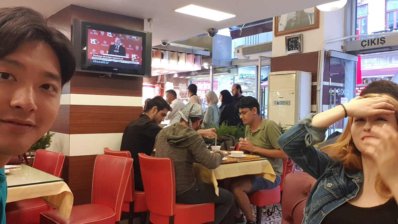 아침이 되어 호스트는 출근을 하고 남은 집에서 대충 끼니를 때우며 오랜만에 편집을 했다. 오후 느지막이 밖으로 나선다. 이전부터 연락하던 터키 친구였는데, 드디어 만나기로 했다. 유로파 지역의 탁심광장에서 멀지 않은 길거리에서 만난다. 함께 터키 뷔페식으로 된 요리를 먹었다. 한국어를 한 50%는 하는 친구였고, 피부색이 정말 하얗고 한국말을 정말 한국 여자처럼 하는 게 너무 신기했다. 억양과 톤이 정말 재밌다.