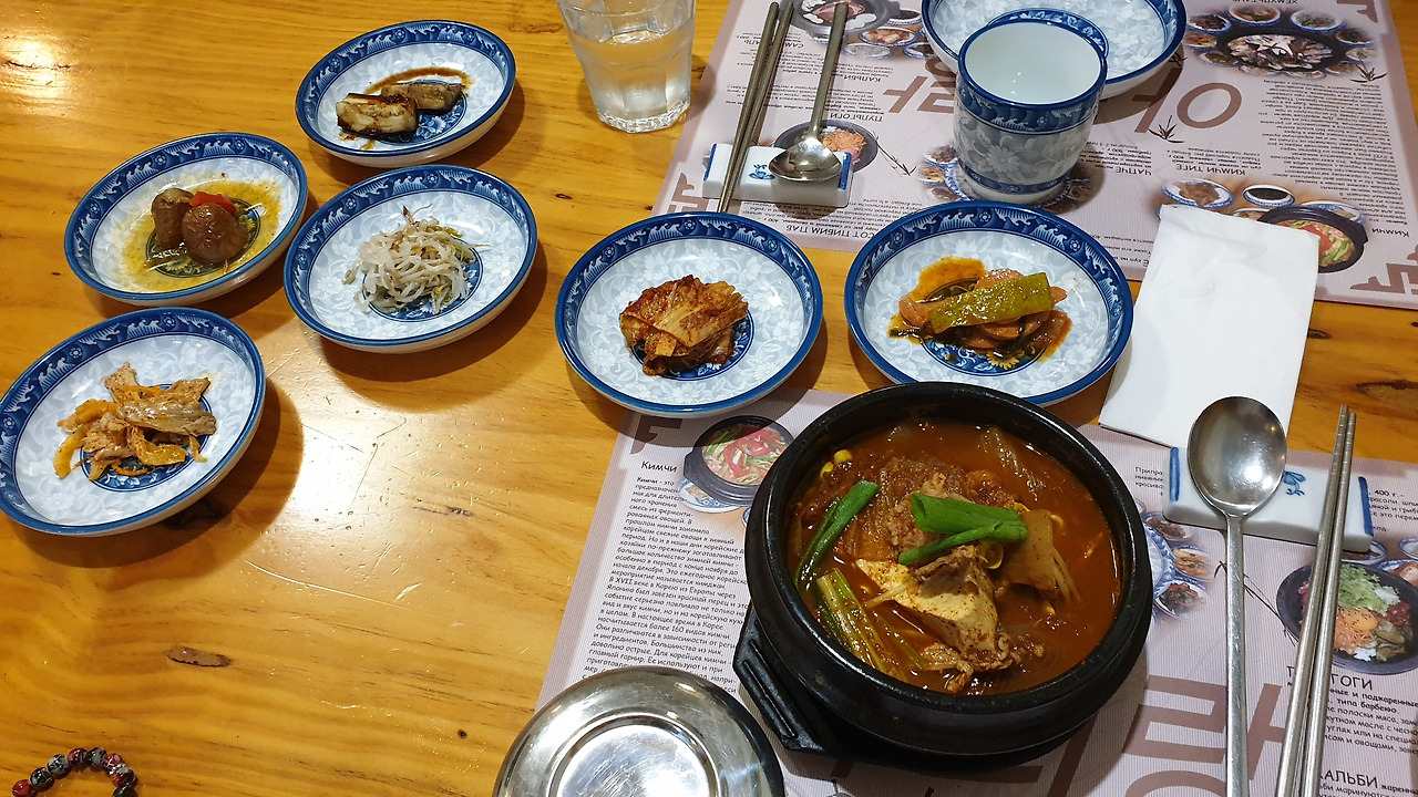 한국사람을 좋아하는 것 같았던 그 친구가 추천해준 한식당 집에서 만났다. 리비드 스카라는 역에 위치한 아리랑이라는 곳인데, 종업원이 정말 예쁜 금발의 우크라이나 분이셨고 서빙을 해주신다. 그릇 젓가락 사소한 집기까지 한국 느낌이 물씬 나는 이 곳에서 나는 김치찌개를 먹고 그 친구는 탕수육 덮밥을 먹는다.