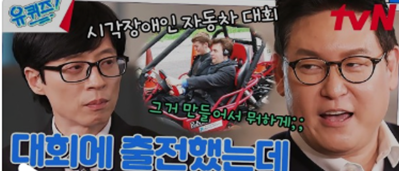 유퀴즈온더블럭 180화, 로봇의 신 데니스 홍 박사님 출연장면밤바다 : 유퀴즈에 나온 데니스 홍 박사님 에피소드가 떠오르네요. 시각 장애인 분들을 위해서 자동차를 만드셨잖아요. 저는 그 이야기를 들으면서 관점이 바뀌긴 했거든요. 당연히 시각 장애인들은 운전을 못할 거라는 생각을 했는데, 공기 기압 기술로 길을 인식하고 운전할 수 있게끔 만든 것 자체가 시각 장애인 분들도 운전을 할 수 있음에도 불구하고 사회적으로 관심을 가지지 않아서 기술이 발전되지 못한 게 아닌가 생각했어요. 해외에서도 돈이 안 된다는 이유로 기술을 개발하려고 하시는 분들이 없었다는 게 안타까운 부분이었던 것 같아요.