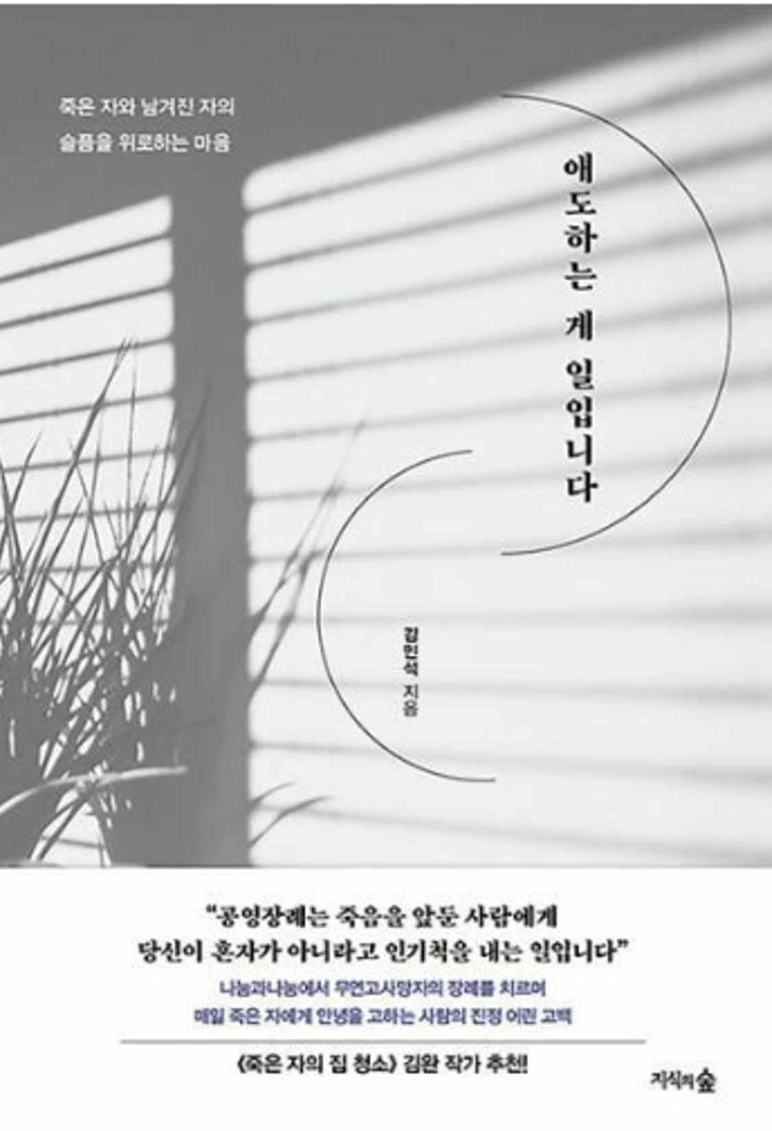무연고라는 그 단어의 프레임이 주는 부정적인 의미에, 많은 사연이 있고 가슴 아픈 사람들이 많다는 것 그리고 그렇게 오는 사람들 중에 진짜 말 그대로 범죄자가 있을 수도 있고요. 그럼에도 불구하고 무연고 장례를 치러주는 분들은 그런 편견 없이 이 사람들을 하나의 사람으로 대우하고 장례를 치러준다고 하더라고요 그래서 그 책도 나왔어요. 거기 일하시는 분이 책을 쓰셨는데 ‘ 애도하는 게 일입니다’라는 책이고요. 이 책을 읽으면서 조금 더 상세한 내용들을 알 수 있어요.