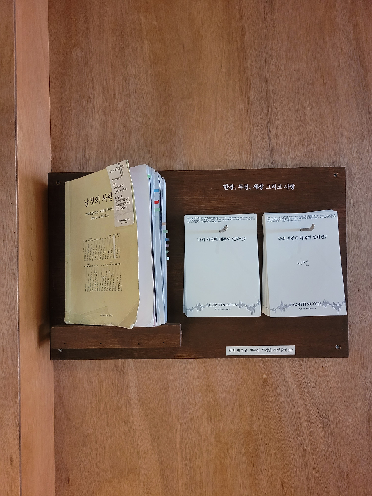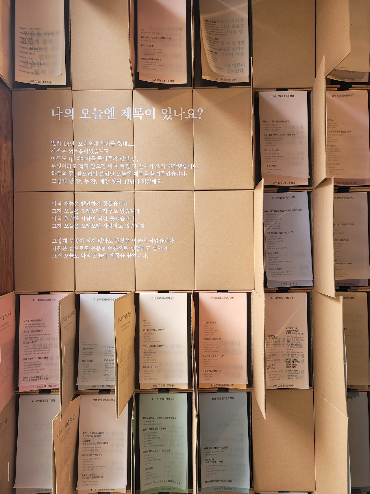 컨티뉴어스 전시에선 '나의 오늘에 제목이 있는지' 물어봅니다.