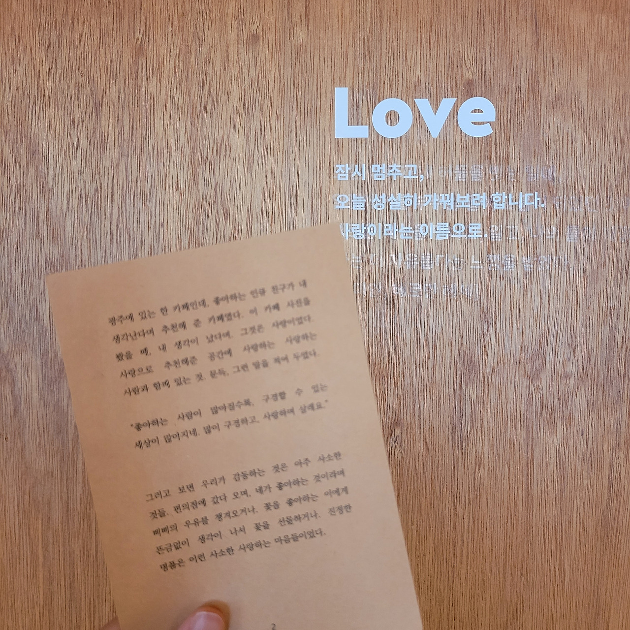 전 '그럼에도, 다시 사랑'으로 짓겠습니다. 가끔 내가 사랑을 말할 자격이 있나 스스로 의심할 때도 많은데요. 그럼에도 사랑을 말하게 되네요. 다만, 오늘은 누군가를 향한 것이 아니라 '삶' 자체를 사랑하고 싶어서 지어봤어요. 요즘은 특히나 제 삶을 사랑하고 싶거든요. :)