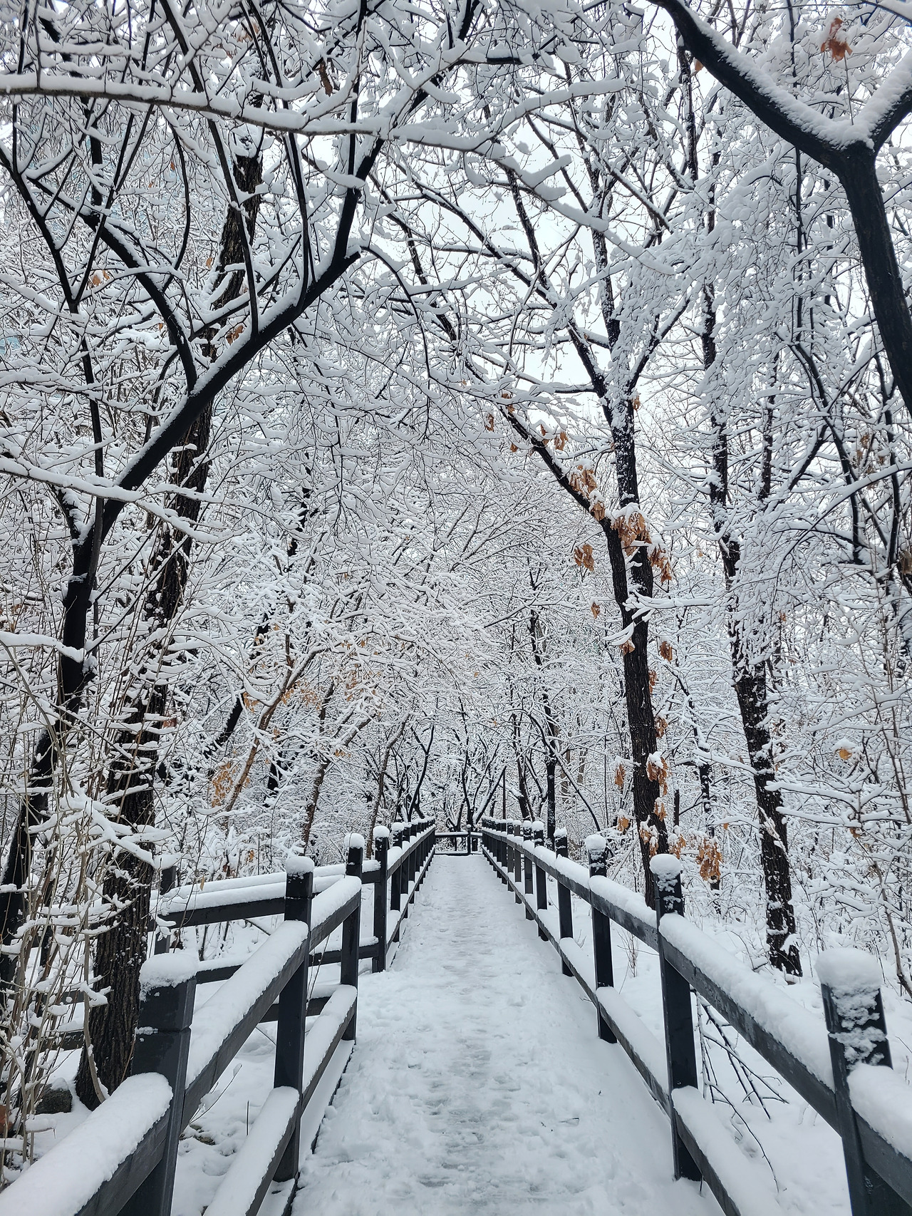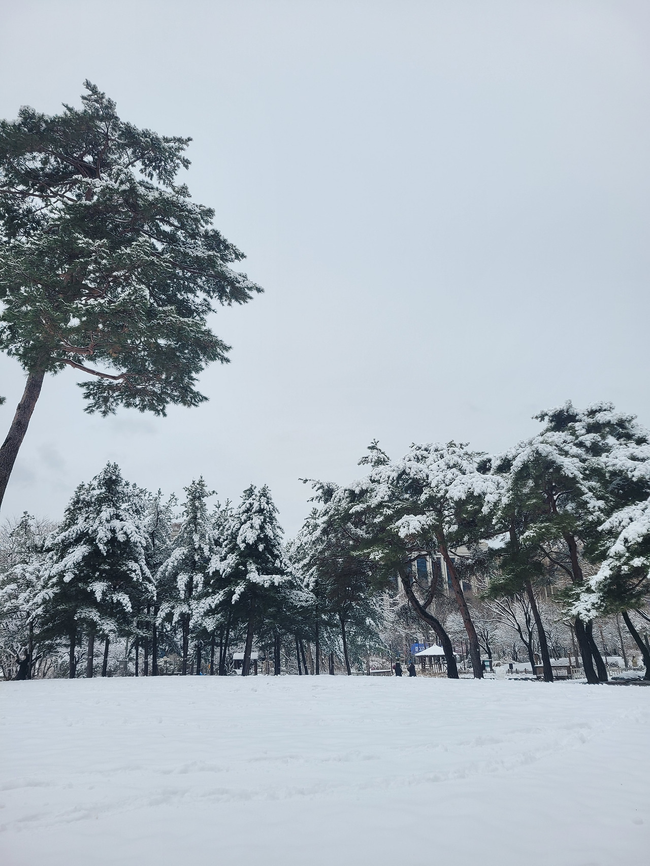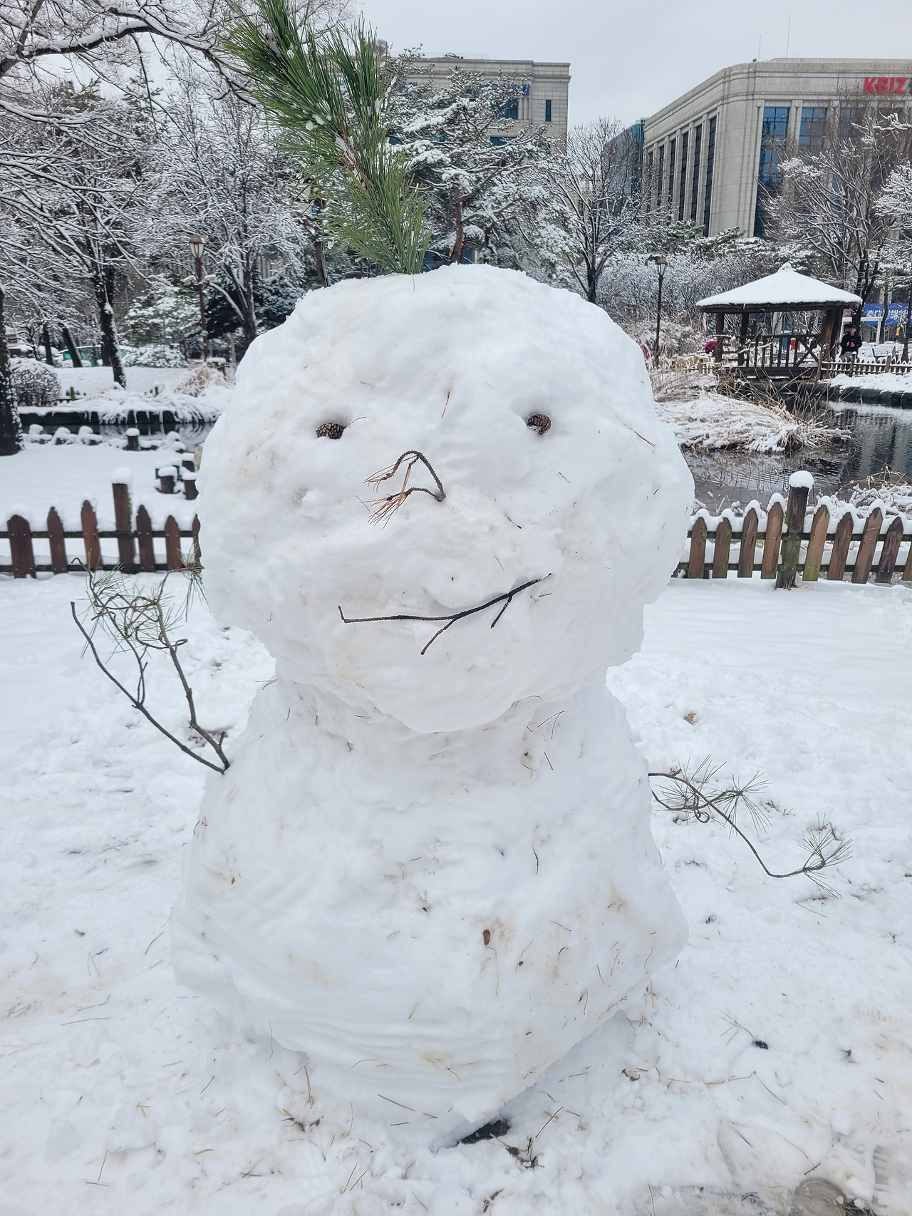 장갑 없이 새빨개진 손으로 눈사람을 열심히 만들던 아주머니 (눈사람 잘 만들었다고 하니까 해맑게 웃어주시던 두 분), 눈싸움하며 뛰어놀던 사람들, 나무에서 눈이 우수수 떨어지자, 감탄의 소리를 내며 행복해하던 사람들.