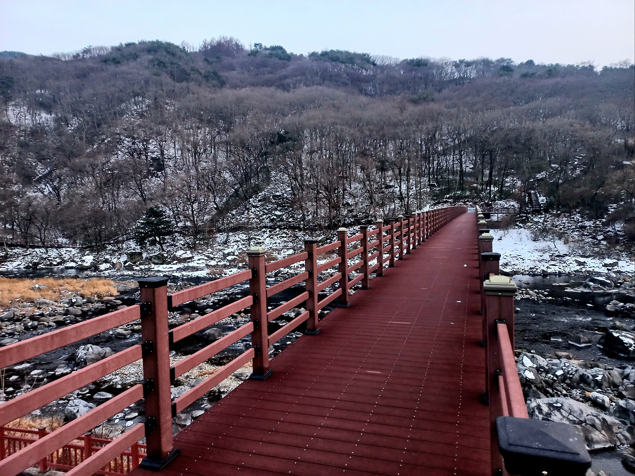 목도리를 칭칭 두른 후 두꺼운 장갑까지 단단히 채비하고서 오래간만에 산책을 나선다. 출발할 땐 춥다 싶었는데, 점차 바람이 잦아들고 햇살이 온화하게 비추자 몸이 훈훈해지기 시작한다. 평소처럼 물가길을 걷다가 개천을 가로지르는 다리를 건넌다. 마을에서 창암산 기슭으로 100미터 정도 곧게 뻗어 있는 이 도보전용 다리는 수년 전 산책로를 조성하면서 새로 지어진 것이다.