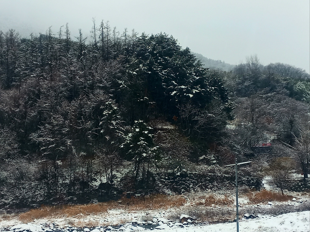 이전에 이곳에 왔을 때는 온 숲에, 마을에 생기가 가득하다고 느꼈었는데, 한겨울에 오니 마을도 빈 것처럼 보이고 숲이 다 죽은 듯하네요."