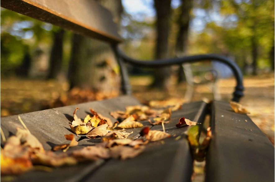 공원의 한 구석 벤치에 앉아