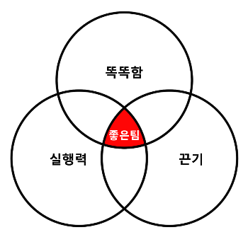 이 3가지가 교집합으로 있어야지 비로소 ‘좋은 팀’이 된다.