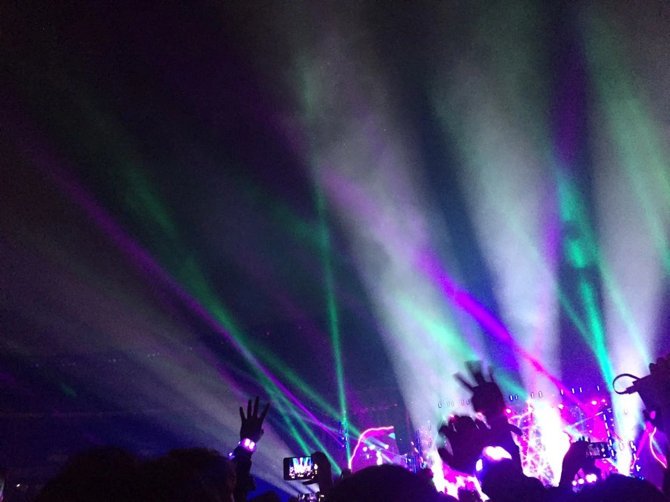 최고 뮤지션 반열에 오른 콜드플레이의 공연은 일반적인 밴드의 공연과는 꽤 달랐다. 보통 밴드의 공연은 러닝타임이 있고, 그 시간동안 해야 하는 각각의 곡들이 있다. 콜드플레이의 공연은 그와는 다르게, 마치 120분짜리 뮤지컬 한 편을 본 것 같은 느낌을 받았다. 몇 분에 어떤 곡을 시작하고, 이 곡이 끝나면 스태프들은 어떻게 일사불란하게 움직여야 하는지, 곡의 1절이 끝나면 기타리스트에게 어떤 기타를 갖다주어야 하는지, 심지어 곡의 어느 부분에서는 레이저를 어떤 부분으로 쏴야 하는지, 그런 세세한 것들이 모두 계획되어 있는 것 같았다. 자이로밴드라는 장치는 그런 시스템을 잘 보여주는 부분이었다. 곡에 맞는 색깔로 발광하는 이 장치 덕에, 관객 하나하나가 공연장의 일부, 공연의 일부가 되고, 공연의 계획에 맞춰 관객들 역시 움직이게 했다. 그렇게 치밀하게 설계된 공연은, 최고의 완성도를 120분간 유지했다. 대신 공연은 120분으로 정확히 끝이었다. 앵콜을 원하는 관객들 앞에는, 텅 빈 무대의 스크린에 내려가는 엔딩 크레딧이 있었다. 그들의 무대가 공연인지, 아니면 잘 짜여진 무대인지, 그런 정체성을 잘 보여준 요소 중 하나가 아닐까.